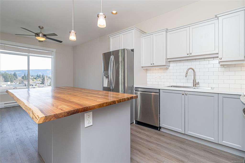 This wonderful newer duplex home with 1956 sq. ft. of living space awaits you. Built in 2010 this quality home offers convenient main floor entry and 9' ceilings. This level features kitchen and island and tiled backsplash, gas fireplace, spacious deck with views to Mount Tzouhalem, Main floor features Primary bedroom with 4 pce ensuite and 2nd bedroom or den, a laundry hook up and 3 pce. guest bath. Transom windows above doorways and a skylight let in a lot of light. Convenient hook up for Gas BBQ. Downsta...