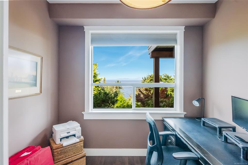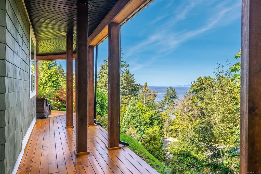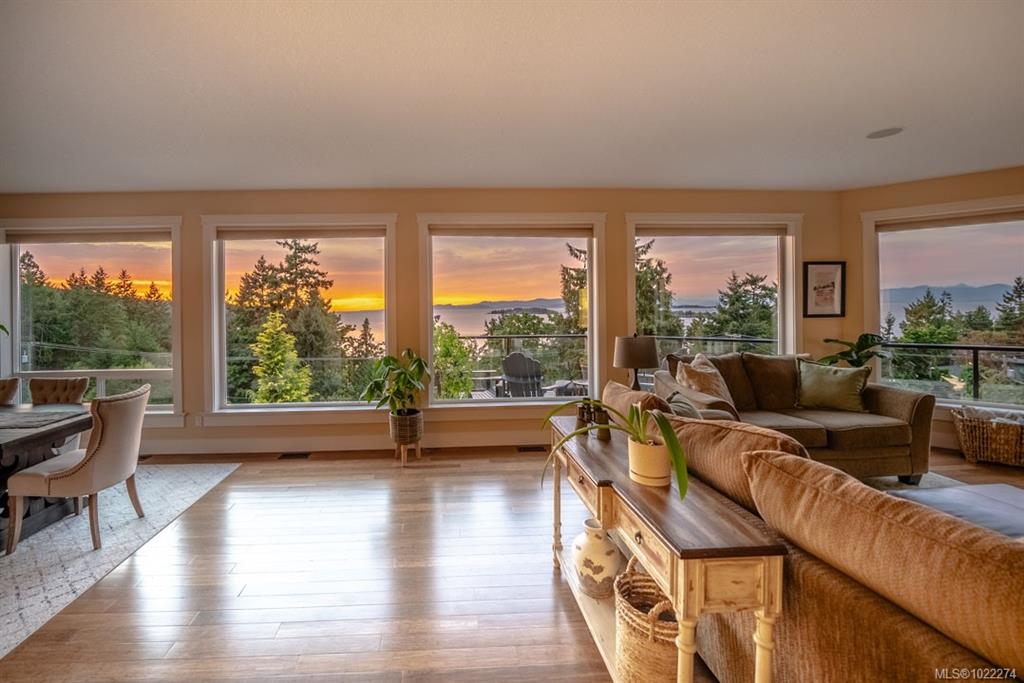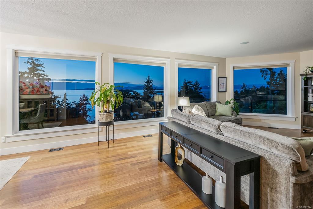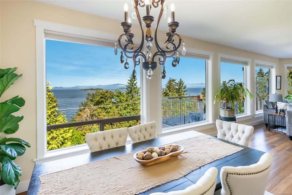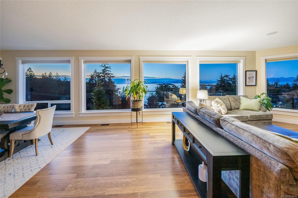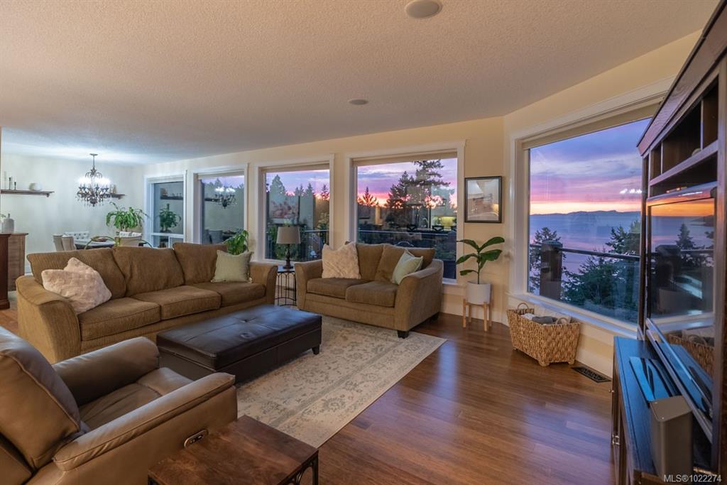 Exquisite Nanoose Bay Oceanview Residence! Bright & spacious 3 Bed + Den/Office/3 Bath Custom Home on elevated .37-acre w/panoramic views of forest, coastal Islands, Strait of Georgia, & distant mainland mtns! Impeccably updated, everyday upper-level living, finished ground level w/guest accom, Expansive deck spaces, OS windows w/fabulous views, & proximity to Parksville & Nanaimo! Great Room w/hardwood floors & captivating views via OS windows, Island Kitchen w/wood cabinetry, WI pantry, quartz CTs, & sta...