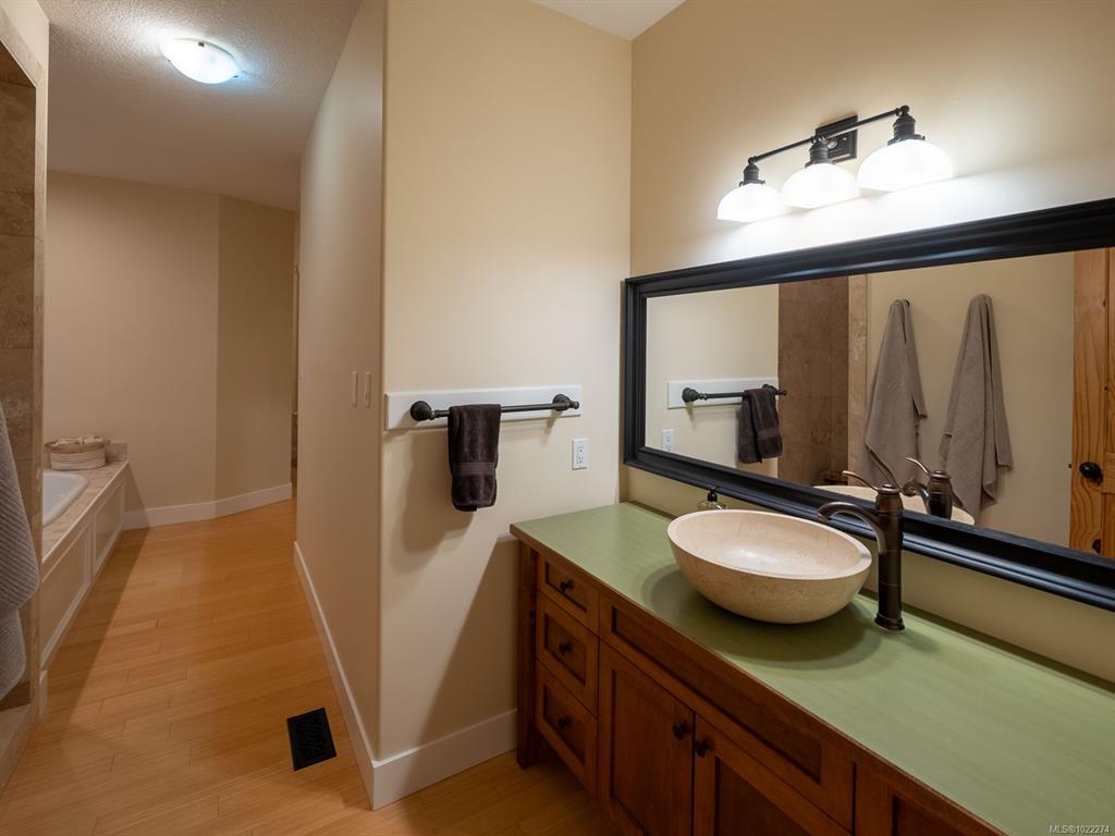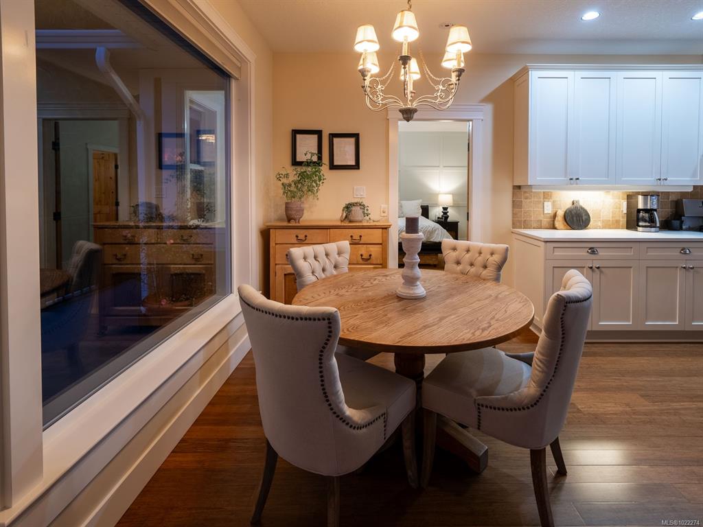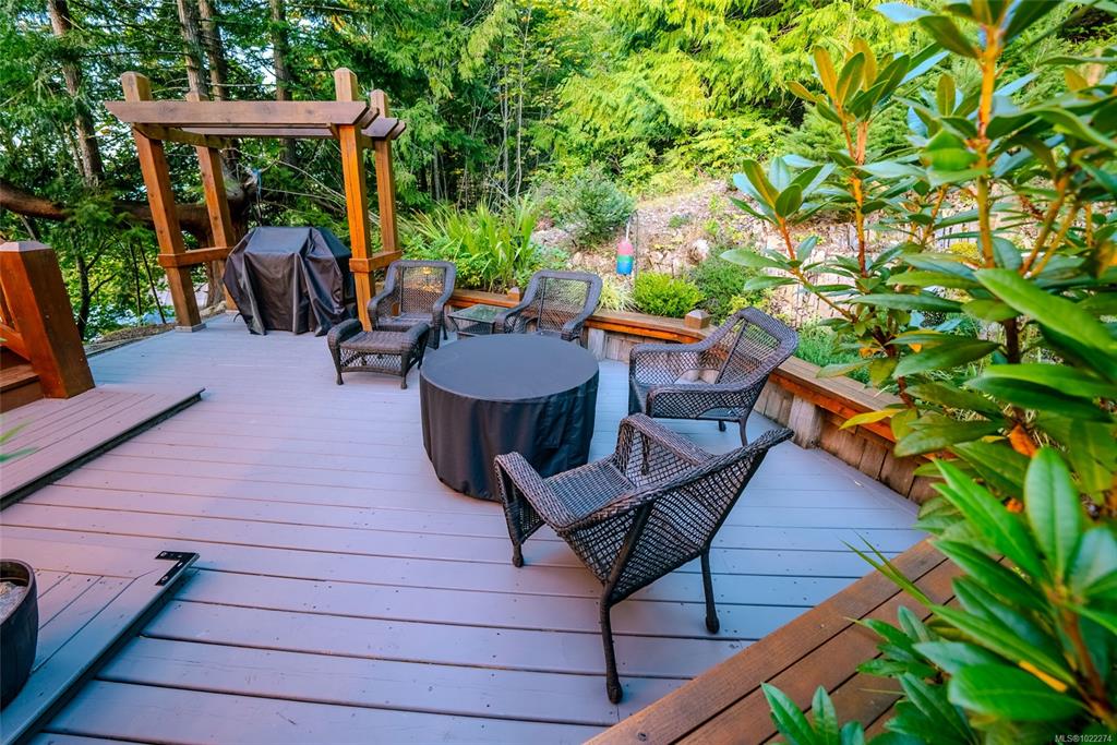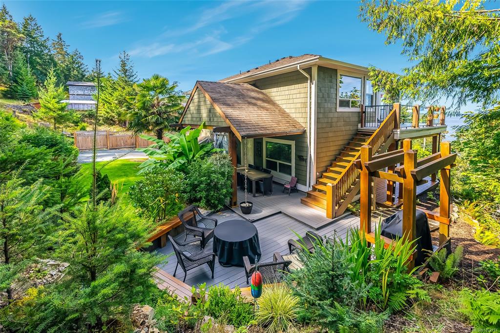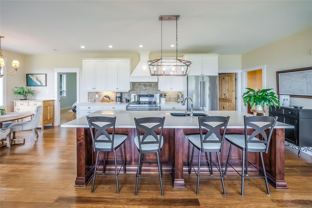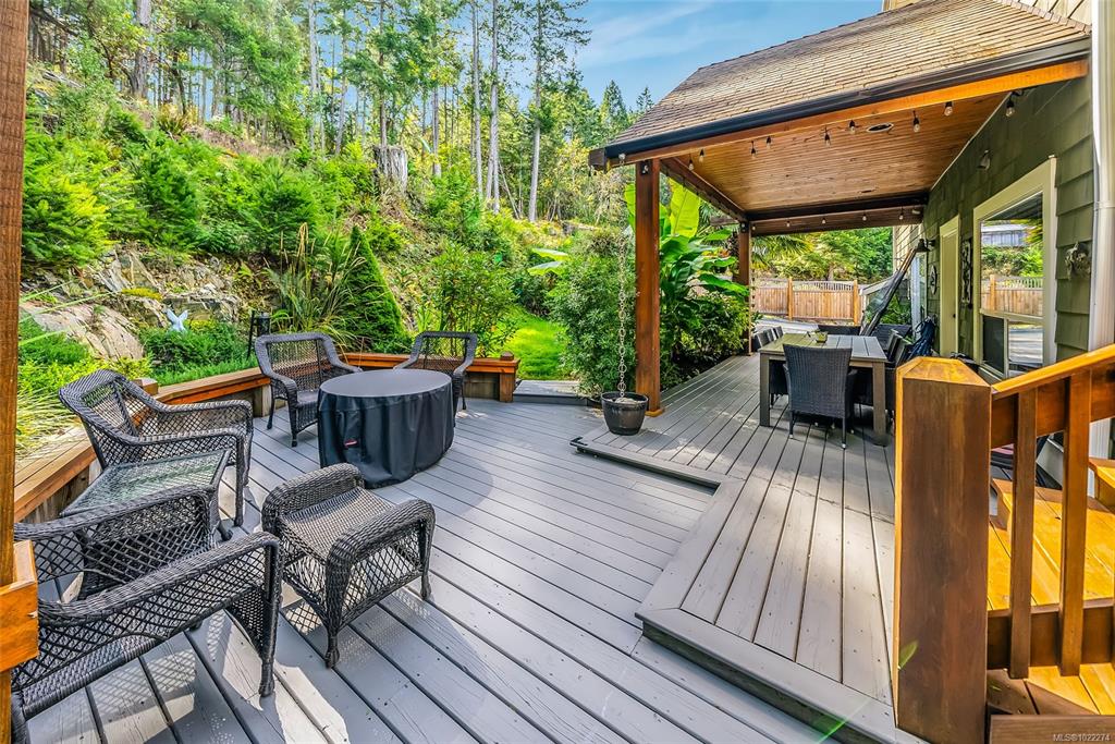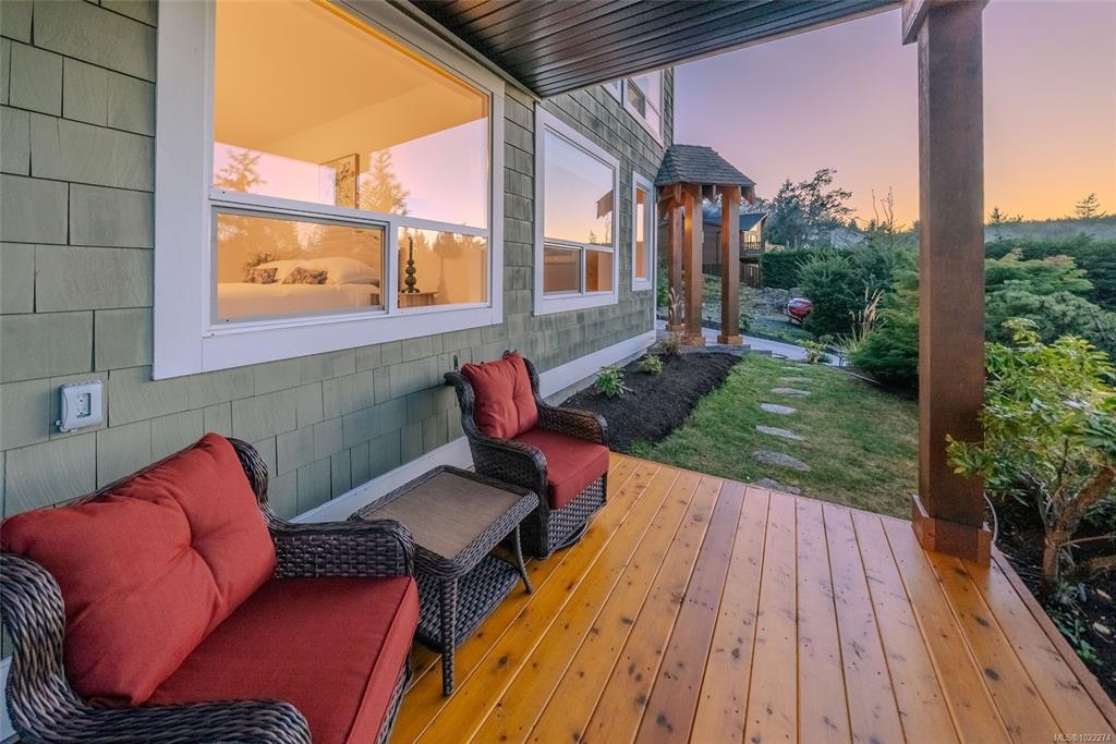 Exquisite Nanoose Bay Oceanview Residence! Bright & spacious 3 Bed + Den/Office/3 Bath Custom Home on elevated .37-acre w/panoramic views of forest, coastal Islands, Strait of Georgia, & distant mainland mtns! Impeccably updated, everyday upper-level living, finished ground level w/guest accom, Expansive deck spaces, OS windows w/fabulous views, & proximity to Parksville & Nanaimo! Great Room w/hardwood floors & captivating views via OS windows, Island Kitchen w/wood cabinetry, WI pantry, quartz CTs, & sta...