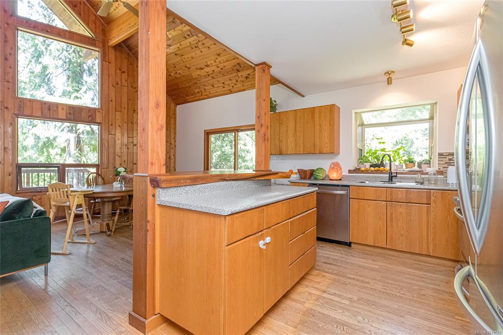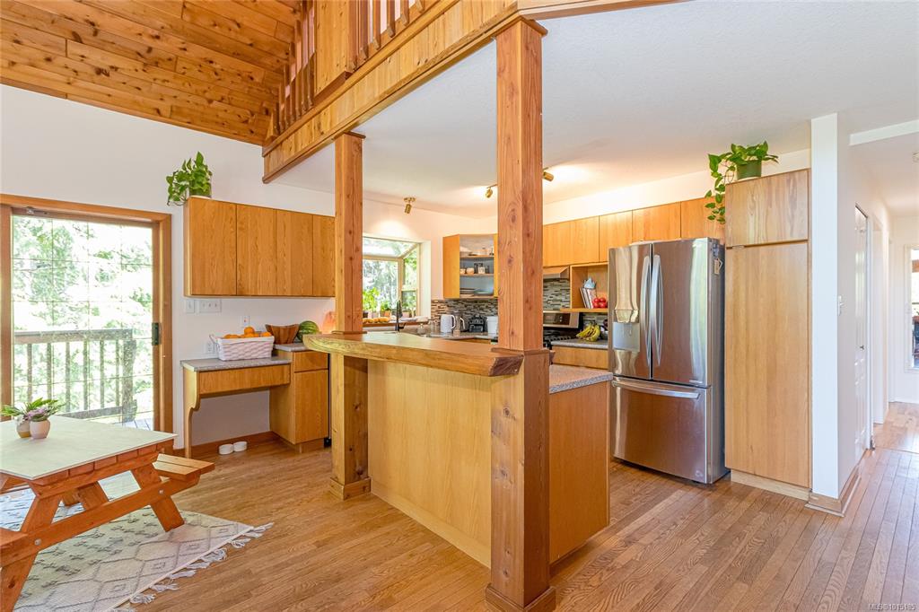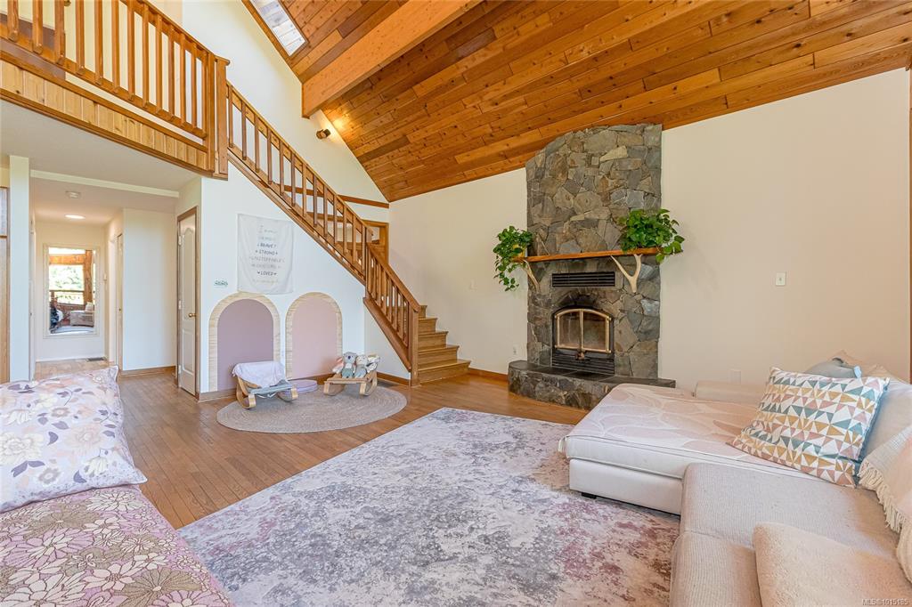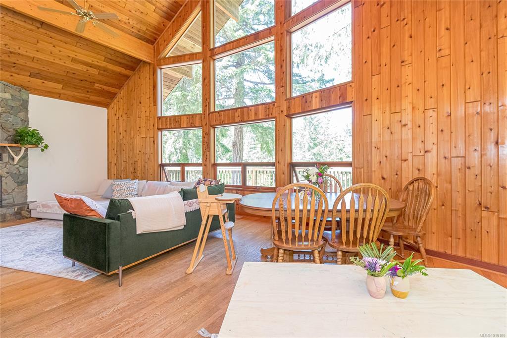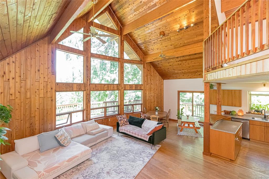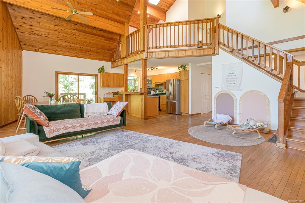 Tucked away on 10.35 private acres, this West Coast-style home blends natural beauty with modern comfort. The open main level showcases soaring 22’ ceilings, a woodstove, expansive windows, and seamless flow between kitchen, dining, and living areas. Two bedrooms and a full bath with laundry complete this floor. Upstairs features a loft-style area and a serene primary suite with double closets and a 5-piece ensuite. The walk-out lower level includes a cozy family room, bathroom, storage, wet bar with second...