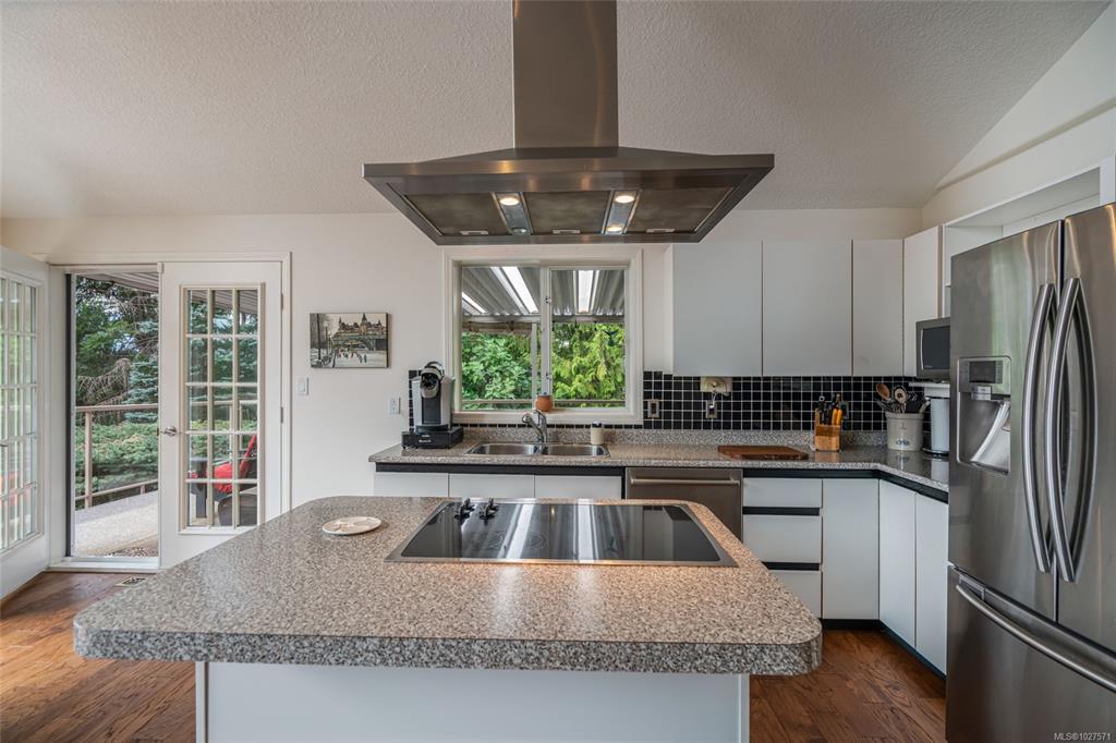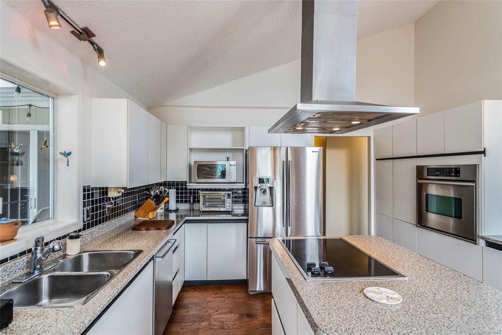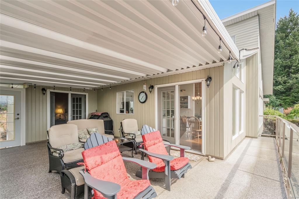 Private Westcoast Style home nestled in Departure Bay's Sherwood Forest neighbourhood. Located high off a quiet no through road this property has an inclined driveway leading to a spacious open landing & RV parking. The family sized 6 bedroom & 3 bath, 3000 sq ft home features numerous beautiful updates.You will love the bright open spaces, 16'10" vaulted ceilings in the living room & 12'8" vaults in the fantastic kitchen with Smooth granite-look countertops, newer stainless appliances & double French doors...