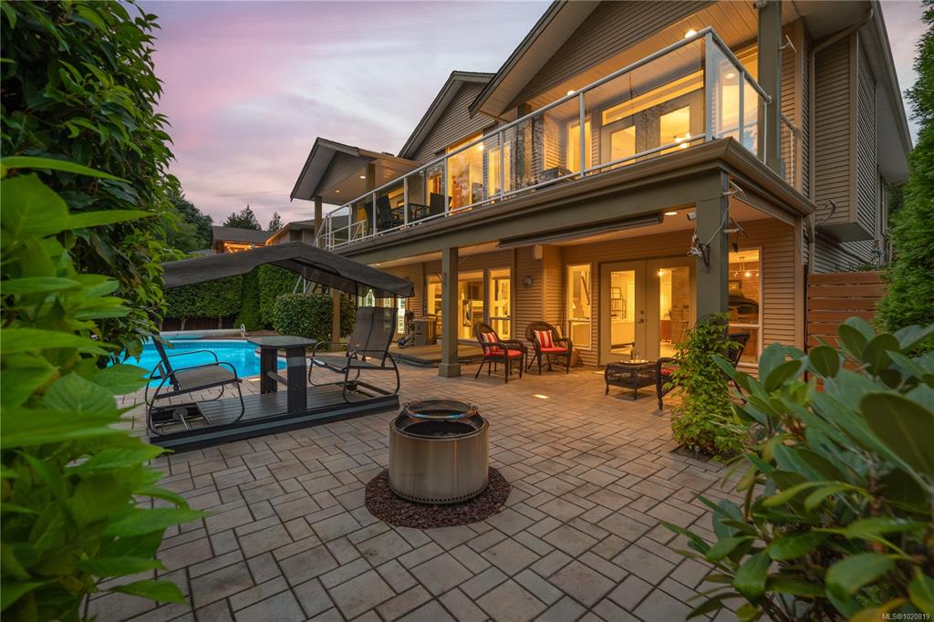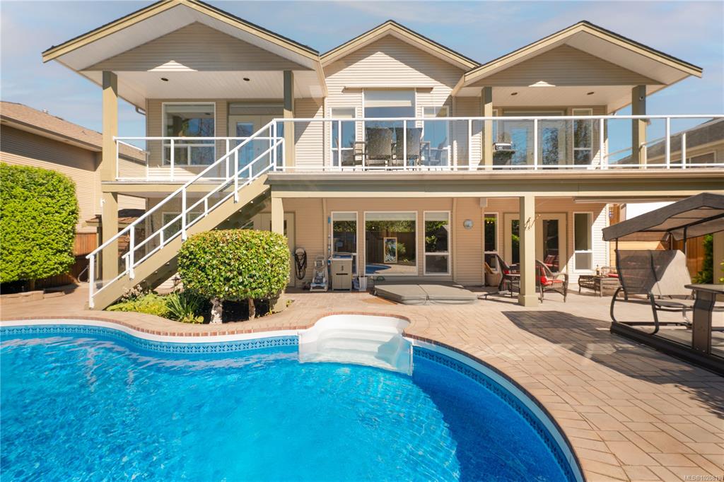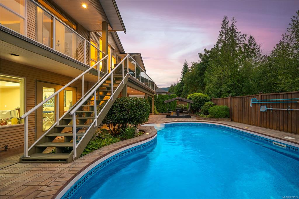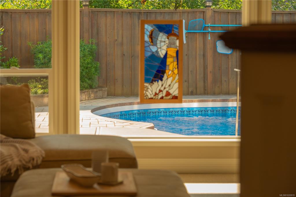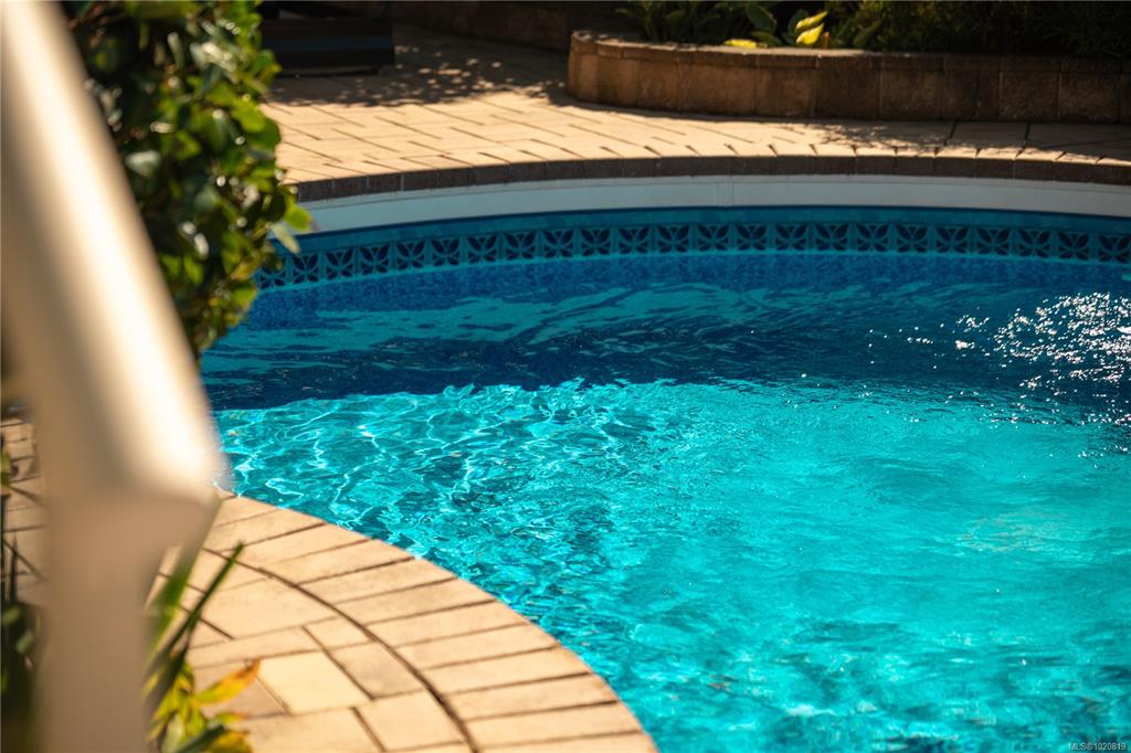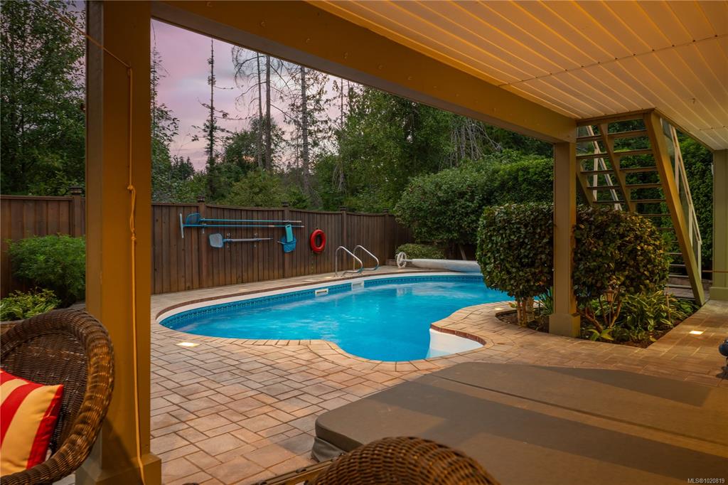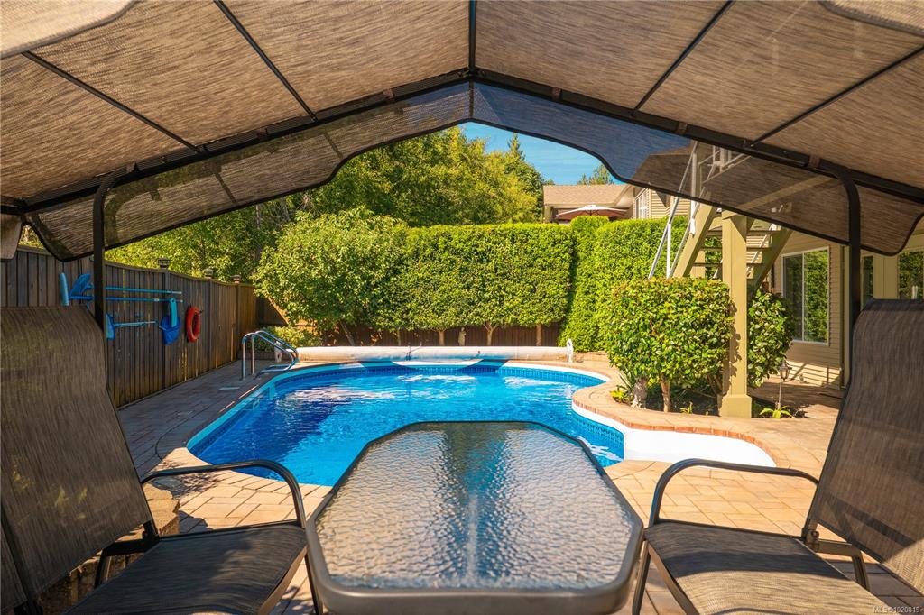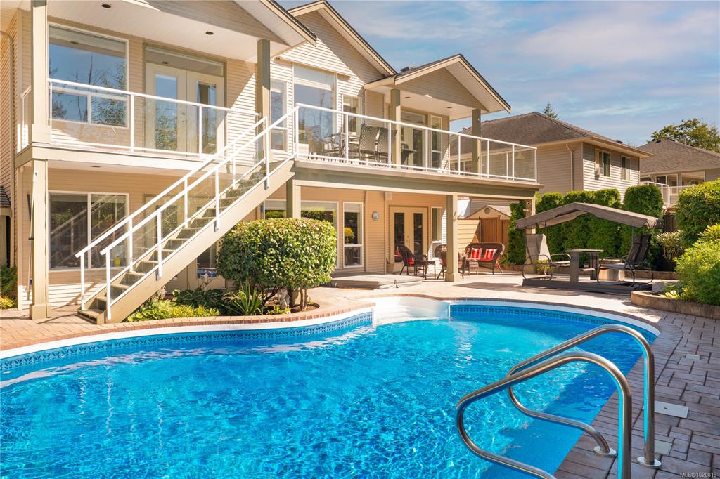 Beautiful custom, original-owner home in N Jingle Pot with in-ground saltwater pool & private parkland at the rear. 2005 build by Georgiaview Homes, this main-level entry, basement walkout features 9–14 ft ceilings, west-facing windows & maple hardwood. New systems include: 50 yr roof, heat pump, high efficiency furnace, gas HWT, deck membrane & pool pump. The primary suite overlooks the pool & trees offering a walk-in closet, spa-like ensuite & french doors to the deck. Timeless kitchen has quartz island, ...