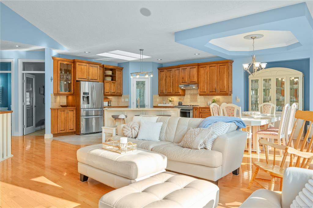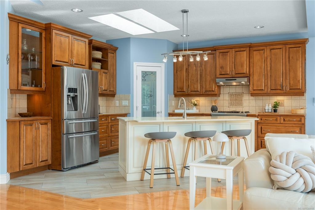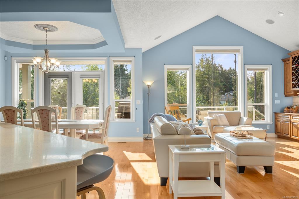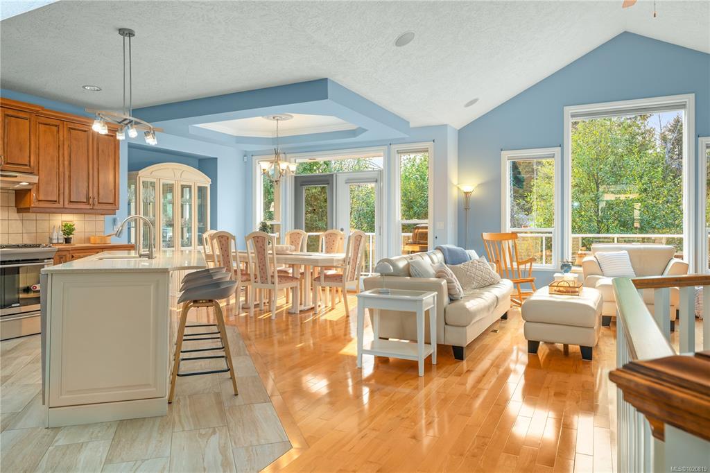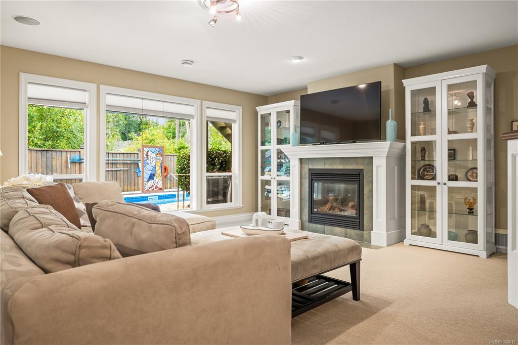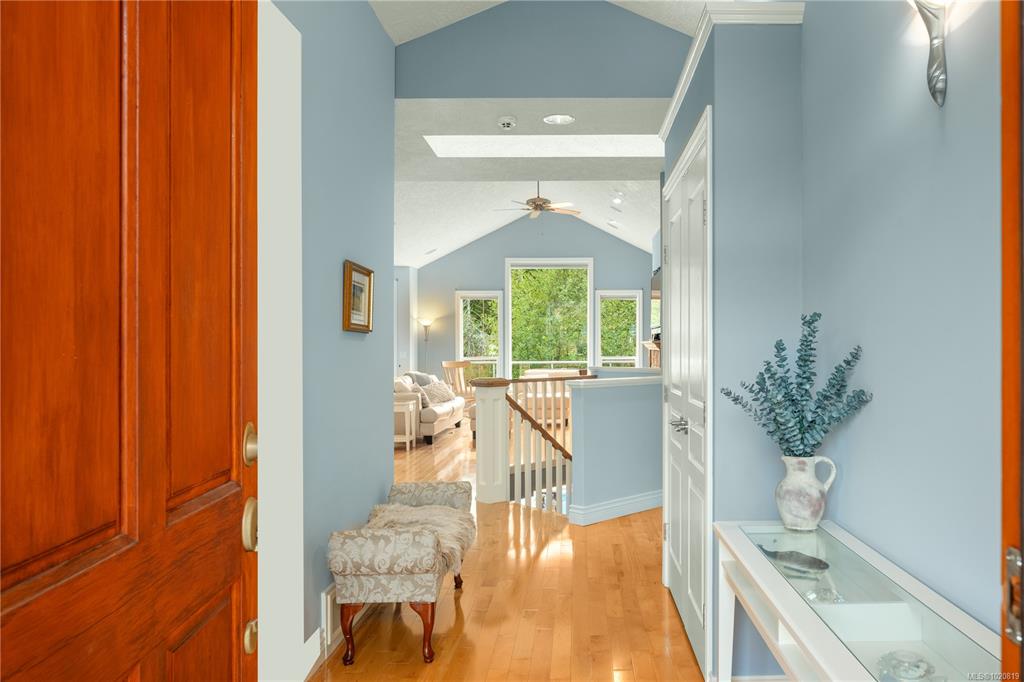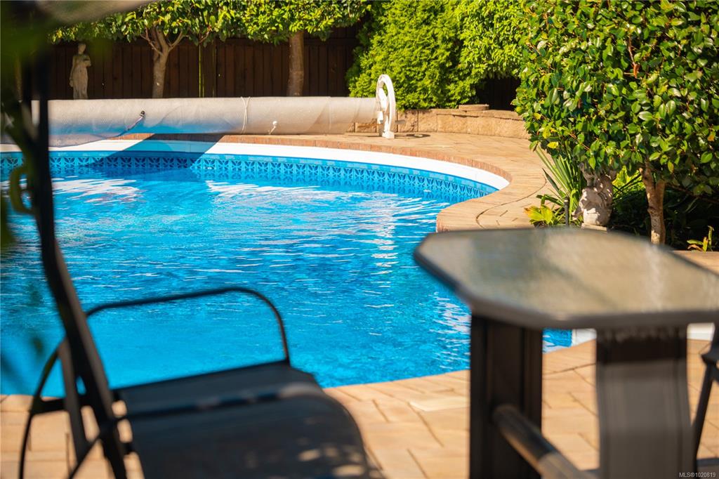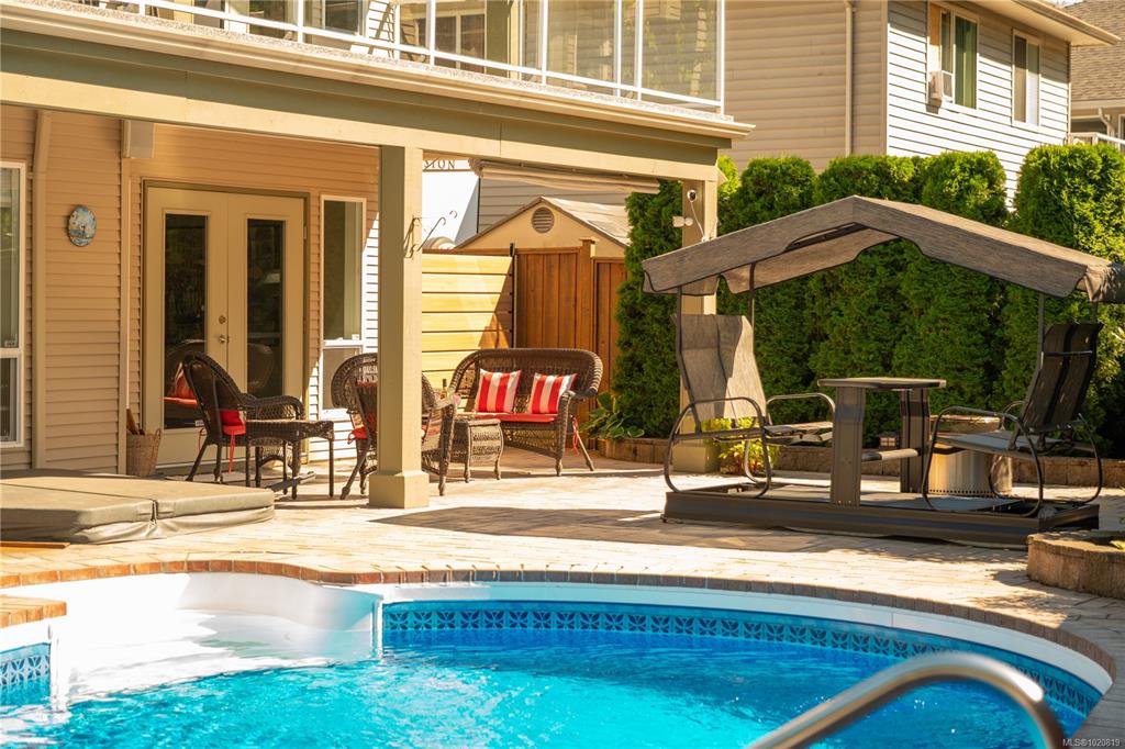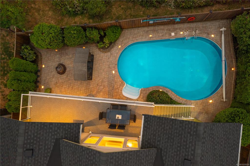 Beautiful custom, original-owner home in N Jingle Pot with in-ground saltwater pool & private parkland at the rear. 2005 build by Georgiaview Homes, this main-level entry, basement walkout features 9–14 ft ceilings, west-facing windows & maple hardwood. New systems include: 50 yr roof, heat pump, high efficiency furnace, gas HWT, deck membrane & pool pump. The primary suite overlooks the pool & trees offering a walk-in closet, spa-like ensuite & french doors to the deck. Timeless kitchen has quartz island, ...