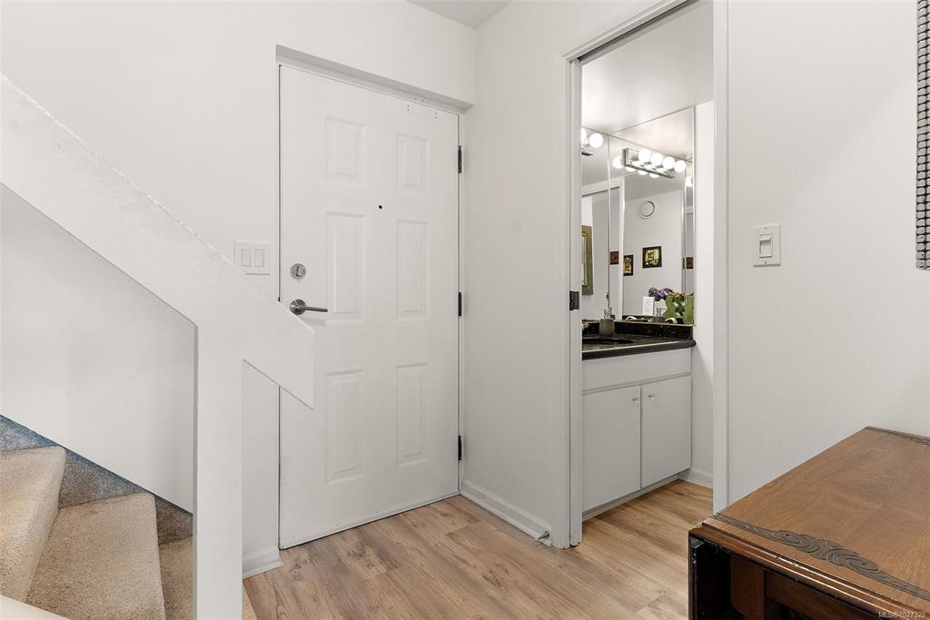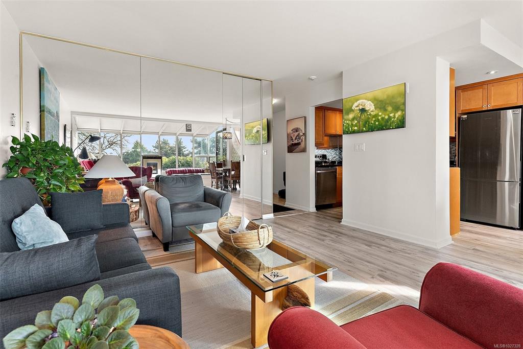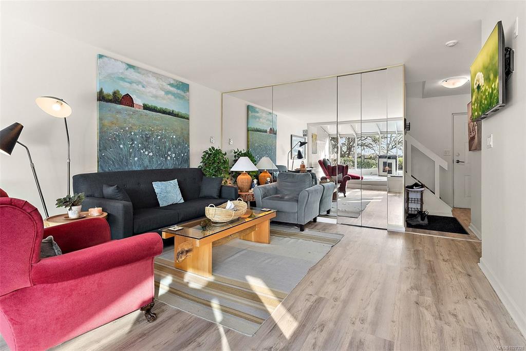 Welcome to this wonderful 2 bed, 2 bath, 2 level condo offering over 1,200 sq. ft. of thoughtfully designed living space in a desirable waterfront building. A unique feature is the enclosed patio, transformed into an incredible sunroom w large windows, electric FP, & exceptional privacy—perfect for enjoying peaceful views of the gardens, ocean, & mtns. Kitchen showcases quartz countertops & flows seamlessly into the living/dining area. Main level also features a 2 piece powder room with quartz counters, whi...