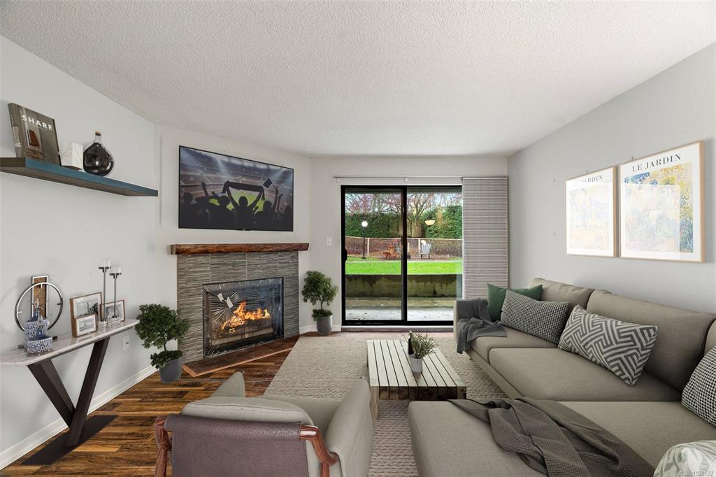 A wonderful find for first-time buyers, or investors. This bright, beautifully refreshed 2-bed/1-bath condo offers an effortless blend of comfort and style. The standout feature is the large private patio—your own quiet retreat overlooking the courtyard. Inside, enjoy a spacious, thoughtfully designed layout with an updated kitchen, generous living room, dedicated dining area, and a cozy (pressed-log) fireplace. Both bedrooms are well-sized, with the primary featuring a walk-in closet and convenient cheater...