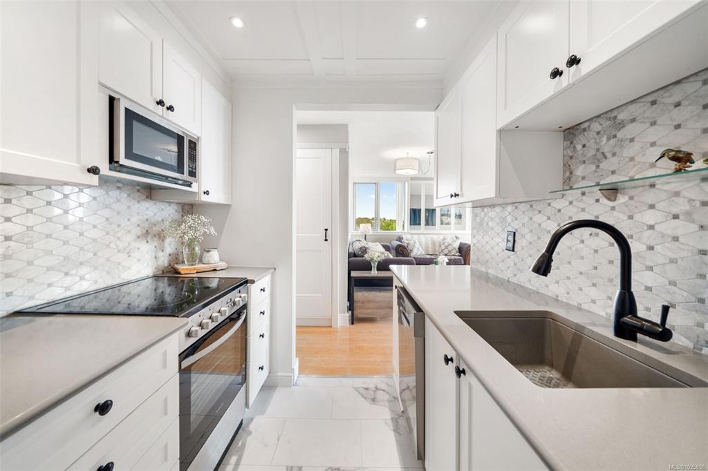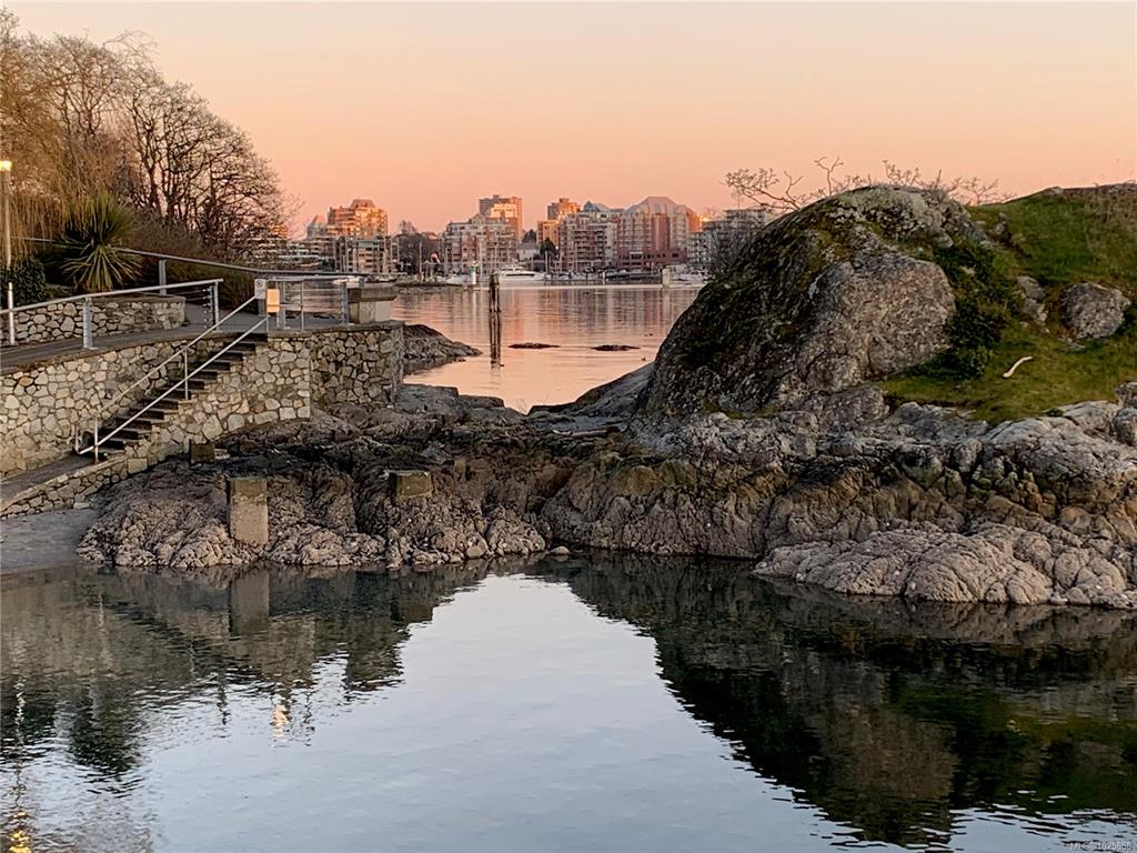 **OPEN HOUSE** Sat, Feb 14 (1:00-2:30) and Feb 15 (2:00-3:30) - Wake up to breathtaking sunrises! Enjoy your morning coffee on the balcony of this south-east facing condo. You will be gifted beautiful views of the Inner Harbour, Laurel Point, Olympic Mountains and the Ocean. This unit offers two spacious bedrooms and tastefully renovated kitchen and bathroom. With a Walk Score of 85, you're only minutes away from parks, groceries, shops and all kinds of restaurants in the area. Across the street is the scen...