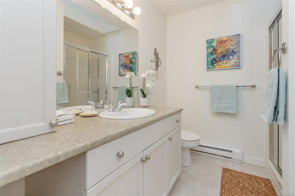 Welcome to popular Belwood Village in the heart of Ladysmith. This beautifully maintained 2 bedroom, 2 bath patio home is privately situated at the end of the complex, offering a large fenced yard for added space for gardening and privacy. Bright and inviting , the open - concept design features three skylights , a vaulted living room ceiling, a cozy thermostat-controlled natural gas fireplace. The upgrades include, the Scottish oak laminate flooring, elegant Italian subway tile back splash in the kitch...