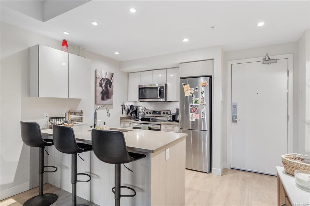 Welcome to Unit 304 at Olivia Residences! A bright and thoughtfully designed 1-bedroom home in this 2019-built development by award-winning Homewood Constructors. Built to Green Gold standards, this well-maintained condo features 9’ ceilings, an open-concept layout, quartz countertops, stainless steel appliances, sleek cabinetry, and expansive kitchen counter space. The living area extends to a private 8'x7' covered balcony with an open outlook. The spacious bedroom offers a double closet, and the home incl...