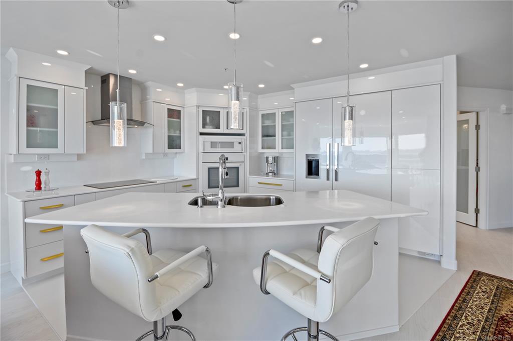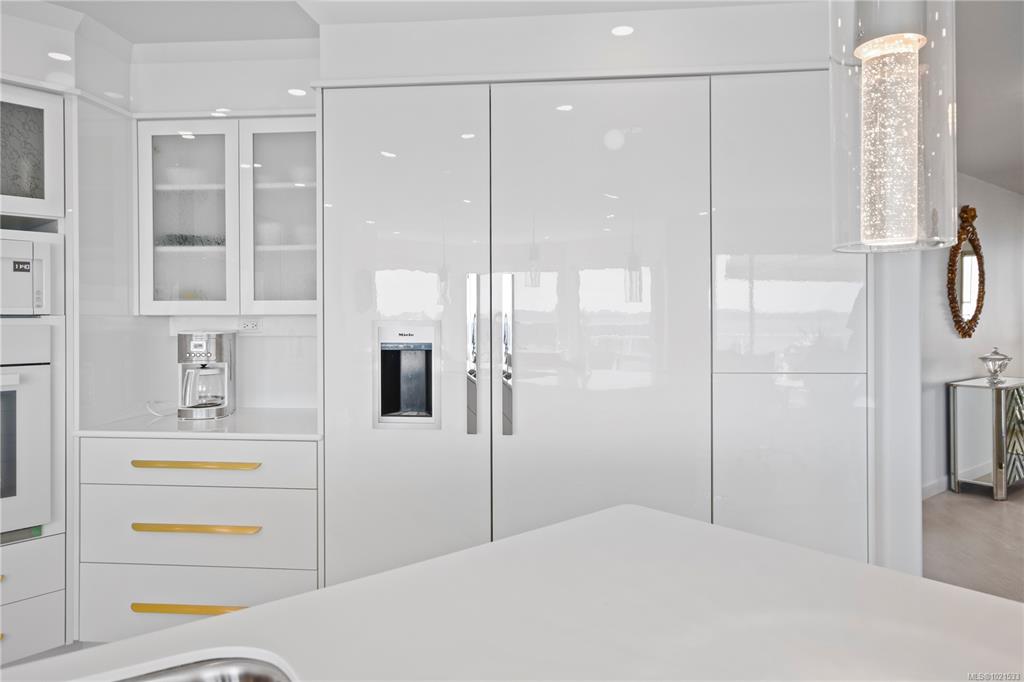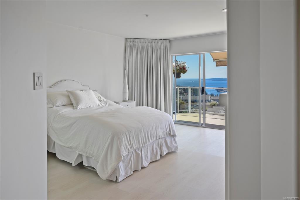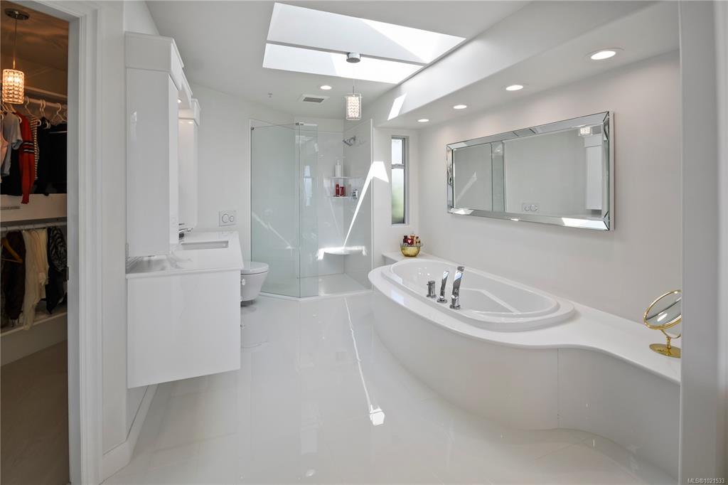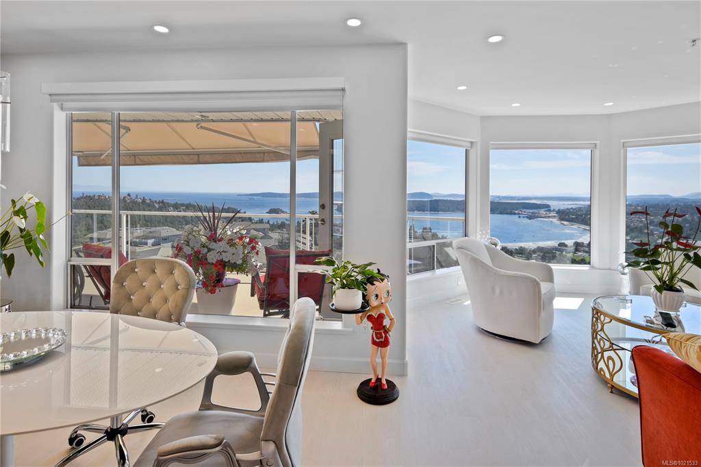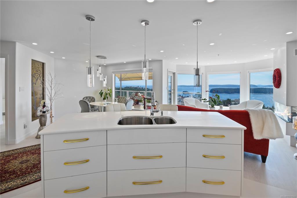 This exceptional condo has Nanaimo’s best views - the city, Departure Bay & the Coastal Mountains. A high-end total renovation including smooth ceilings, refined finishes, and premium materials establish an elegant, modern atmosphere throughout. The chef-inspired kitchen is a standout, featuring a Miele fridge-freezer, induction cooktop, and Miele range, all seamlessly integrated into custom cabinetry. The spa-inspired ensuite feels like a private retreat, complete with heated floors, a luxurious soaker tu...