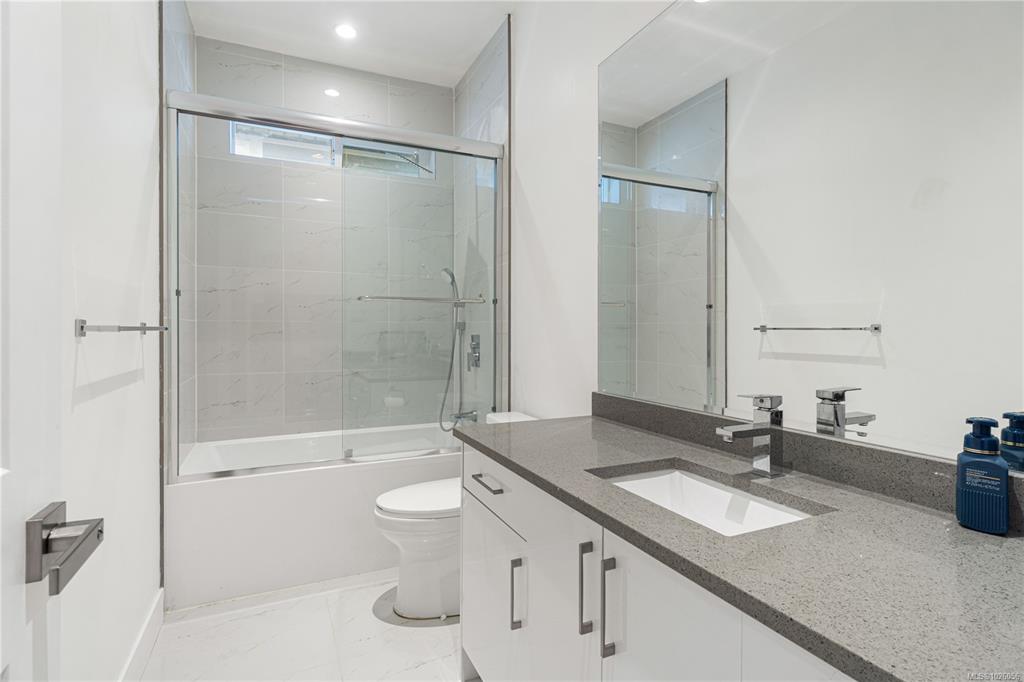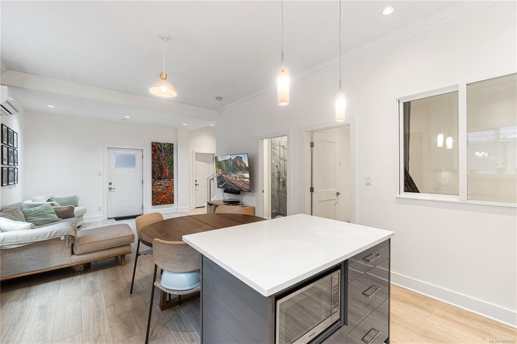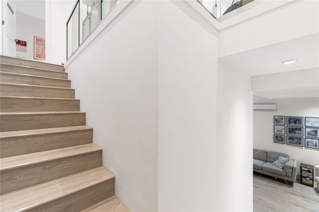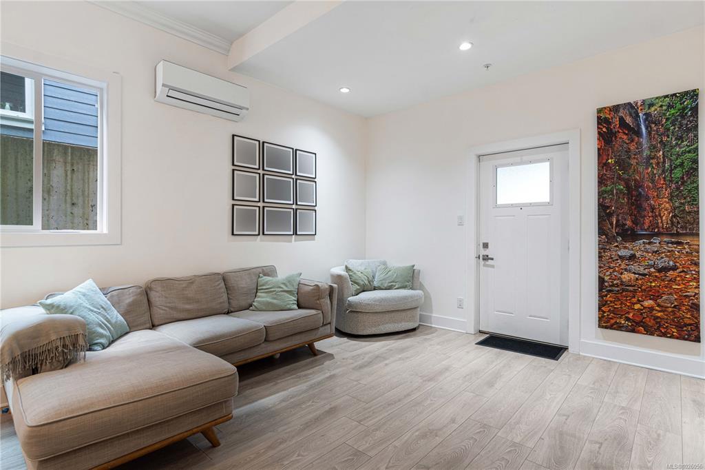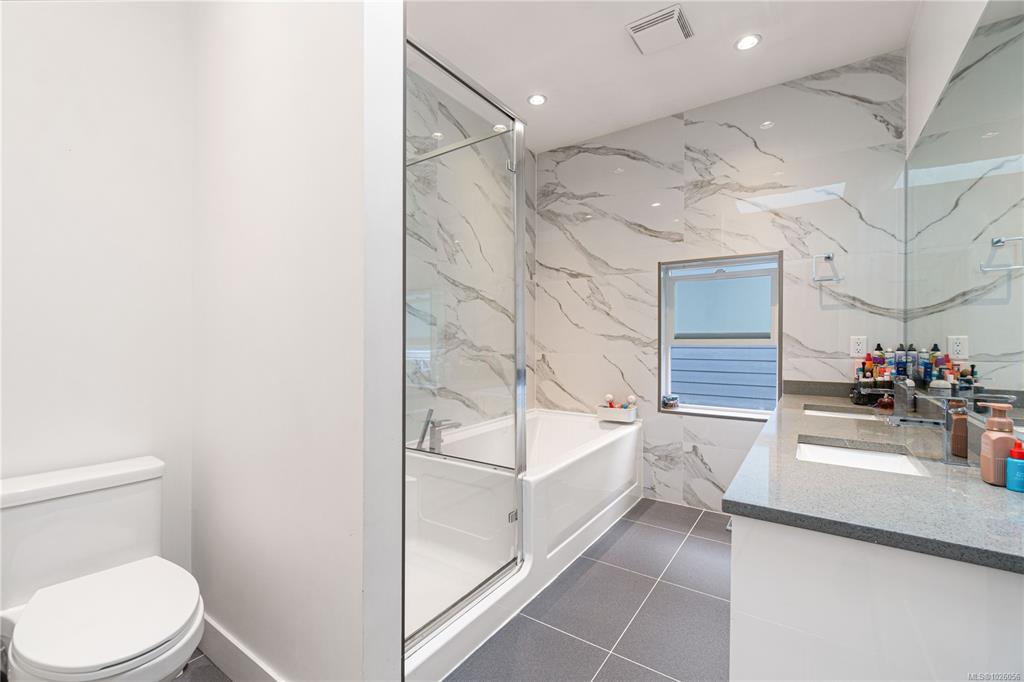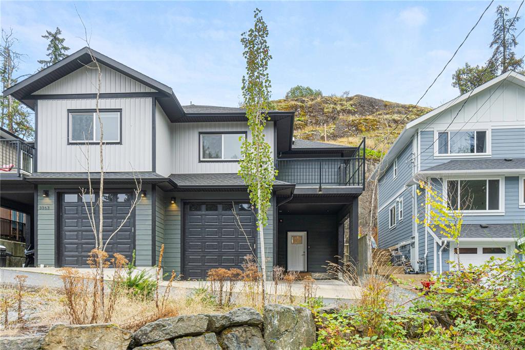 Departure Bay gem! Desirable location near Linley Park. Quality, 2021 built, half-duplex with custom features. Nearly 1800sqft 3 bed + den & 3 bath. The main floor boasts 10 ft ceilings, an open-concept kitchen with quartz counters, high-gloss cabinetry, stainless appliances & open concept dining/living areas. A den on the main next to a 3 pc bath with custom shower adds versatility. Glass & steel railings on stairs to a skylit upper level with 9 ft ceilings. Stunning primary suite featuring a luxurious 5-p...