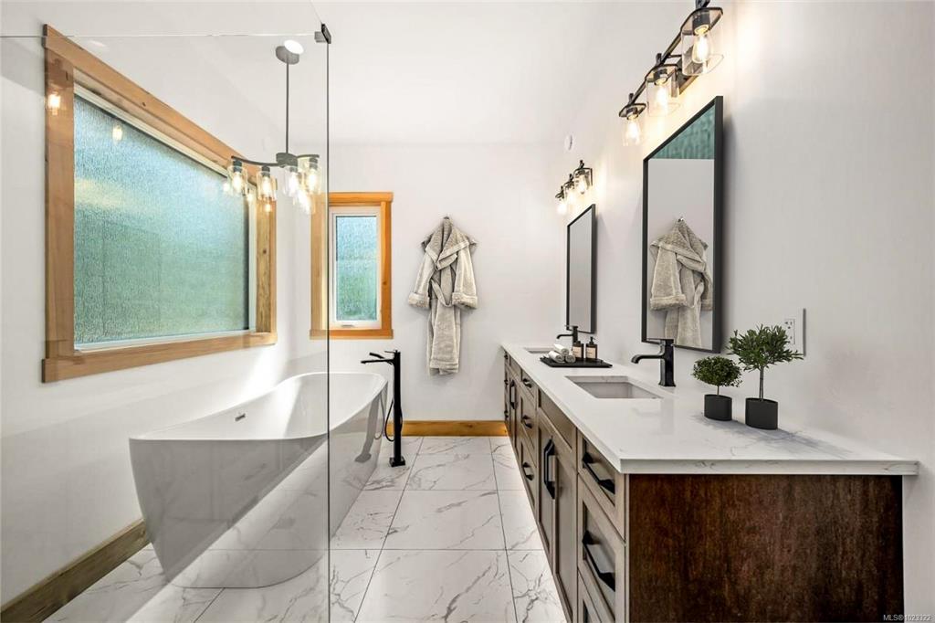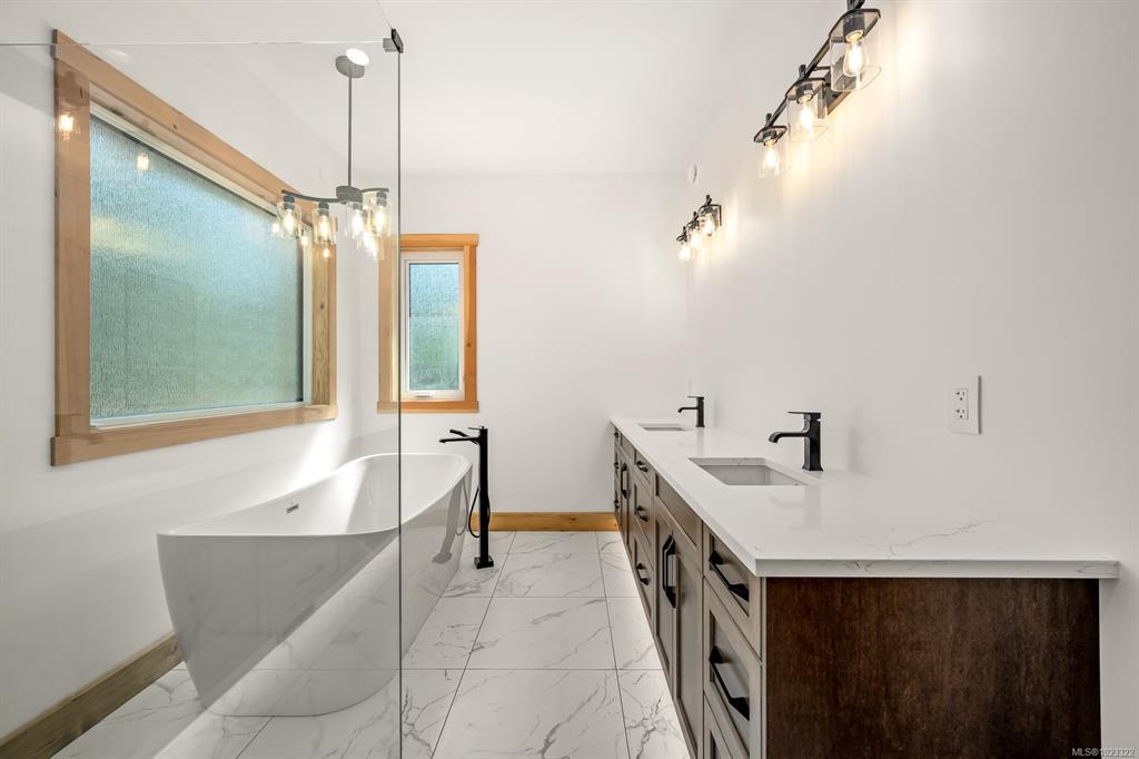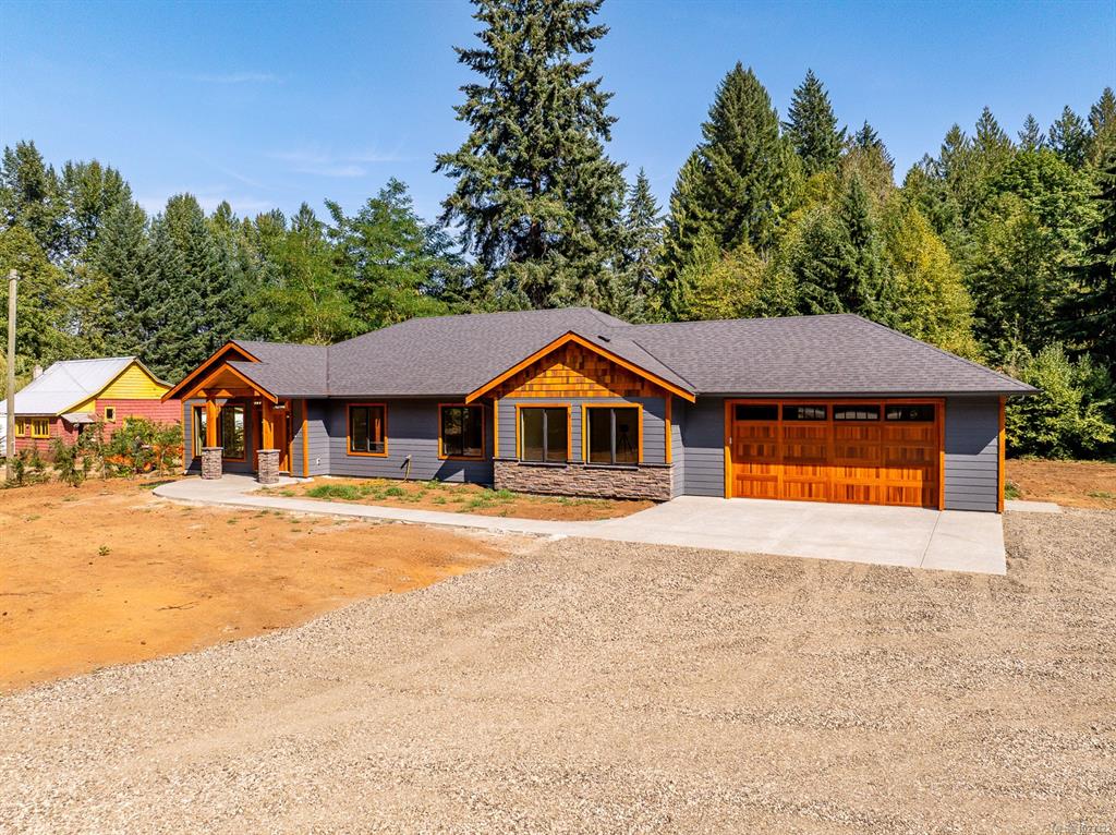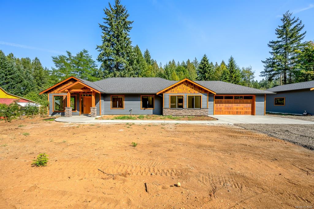 3 bedroom, 2 bath, 2310 sq ft executive rancher by Dragonfly Homes, ready for occupancy. Set on a level 2 +/- acre, private treed lot with a 1000 sq ft detached shop with over height garage doors. This high end rancher has all the west coast finishing Dragonfly homes is known for with a modern twist. Hardwood and tile floors, fir trim, hemlock doors and a huge great room with vaulted ceilings that extend through to the huge partially covered patio. Living room boasts floor to ceiling windows and a cozy fire...