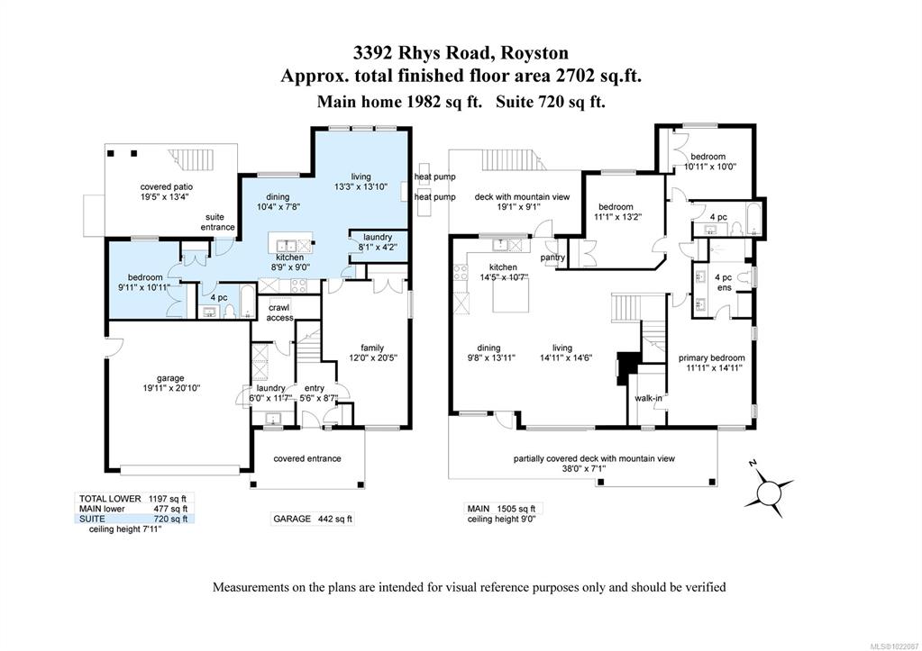 This quality-built home by Lawmar Construction offers fantastic mountain views! It has 2702 sqft of living space over two levels that includes a legal, 720 sqft, 1 bed/1 bath suite for mortgage helper or extended family. Bright main level up has an inviting open concept kitchen/dining with quartz counters, full height quartz backsplash, stainless appliances & an island. Enjoy those mountain views from the light & bright living space while warming yourself by the cosy gas fireplace or from the front deck. Th...