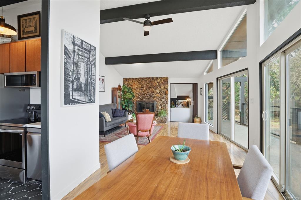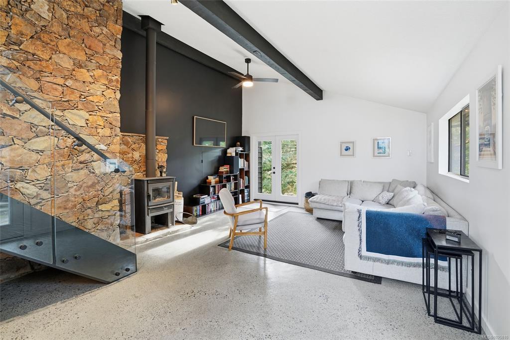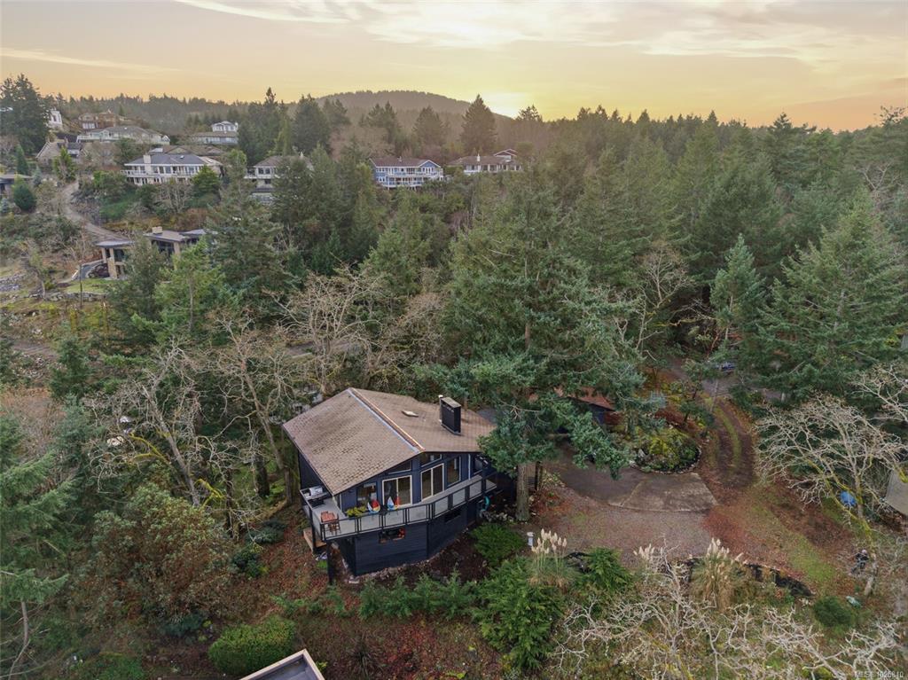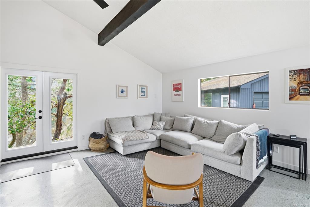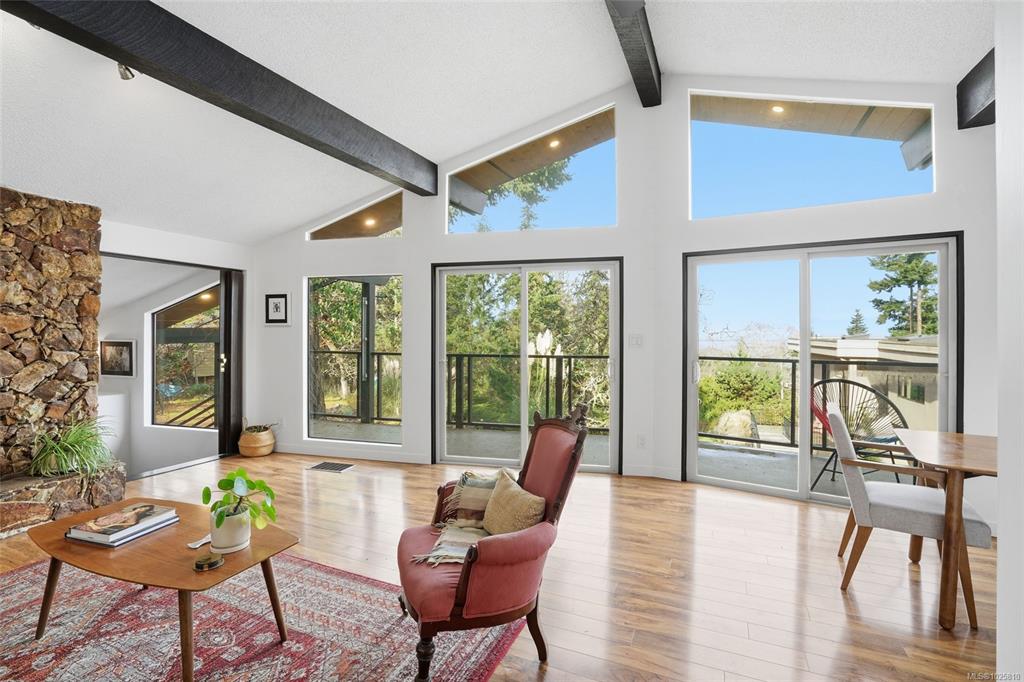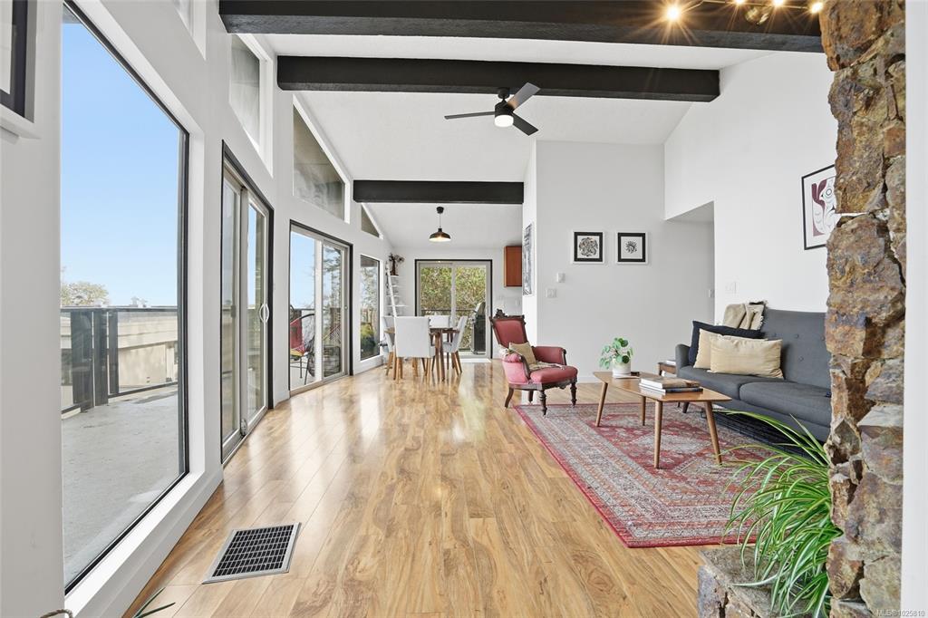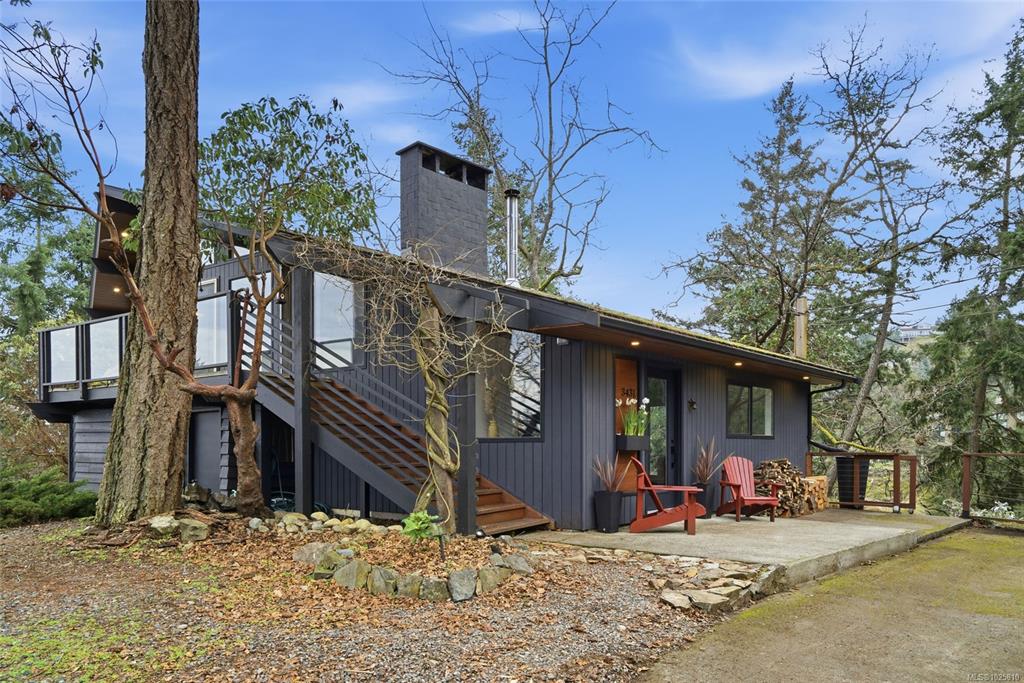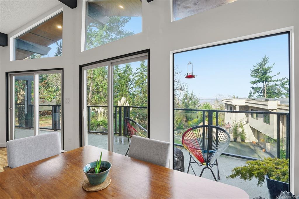 Minutes from Schooner Cove Marina on Vancouver Island you will find this charming West Coast home with Ocean and Mountain views. Accessed by a private driveway and blending high ceilings and large windows with natural surroundings, this beautifully-designed home features open plan living with post-and-beam construction. Numerous windows and sliding doors frame the captivating forest views, and extensive use of local wood allows for seamless indoor-outdoor living. Living/Dining/Kitchen on the main level flow...