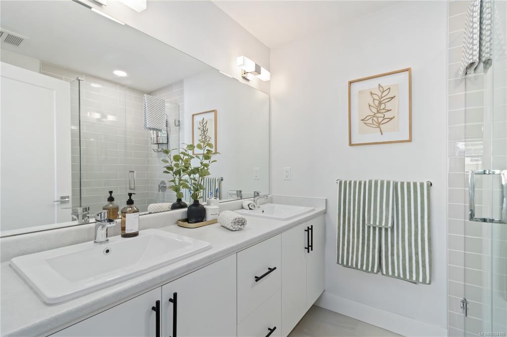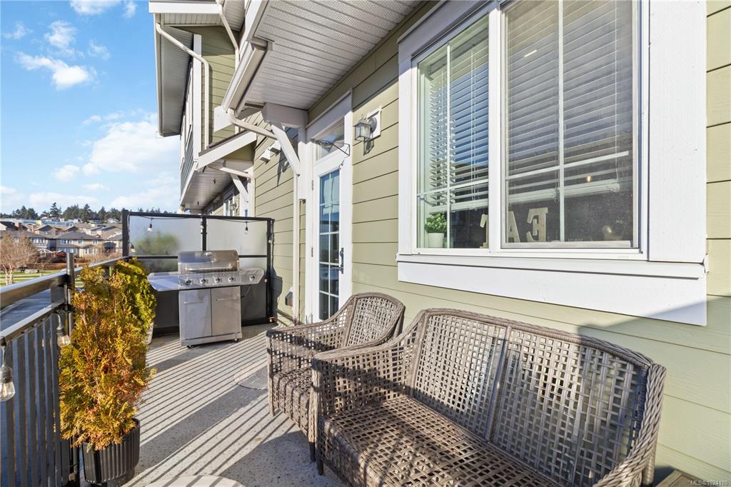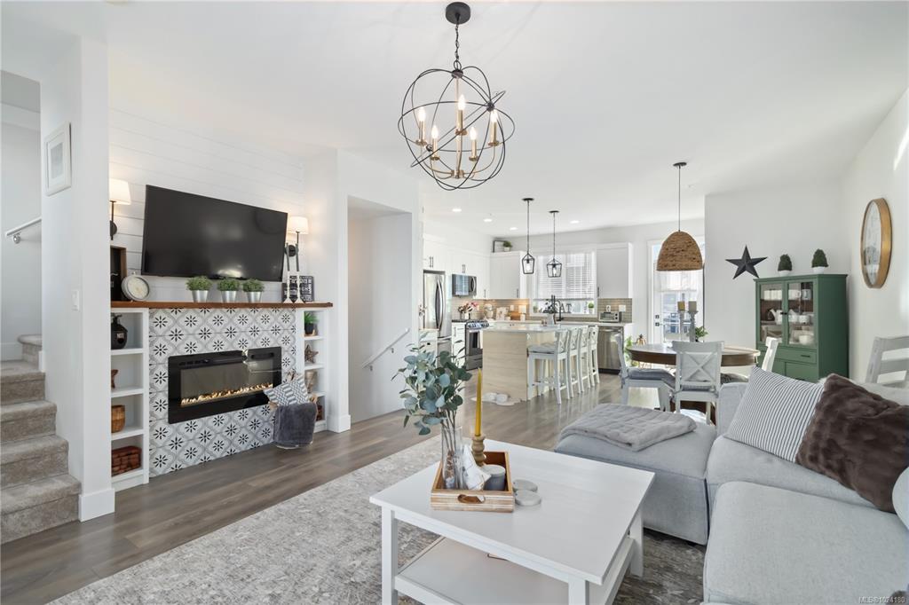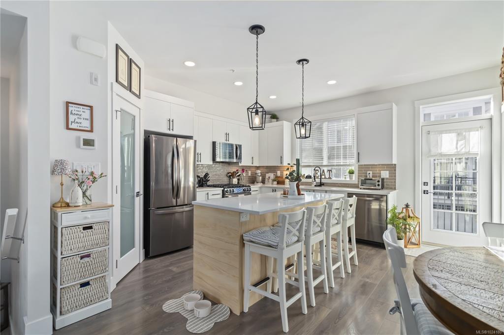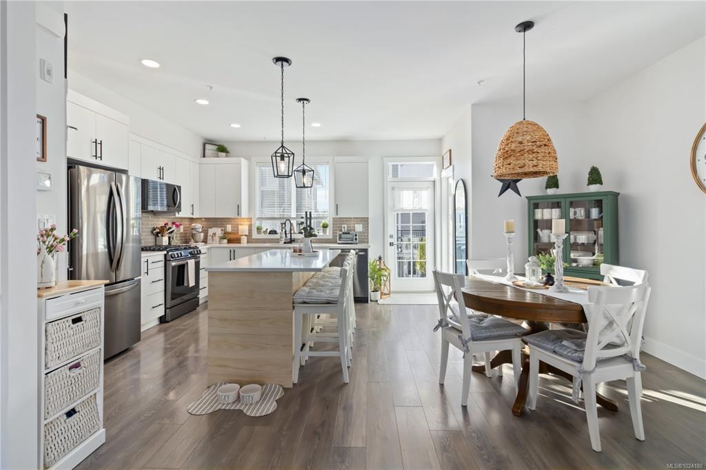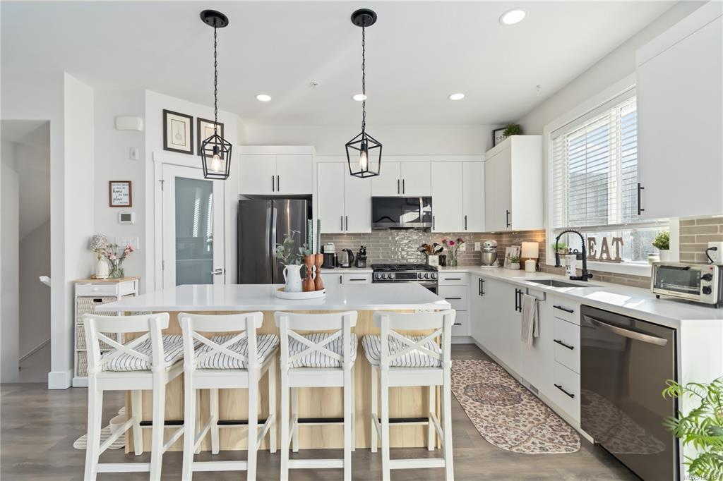 Experience "Compass" in Royal Bay! This 2021 GableCraft luxury townhome is loaded with upgrades. The open main floor features 9' ceilings, a custom built-in electric fireplace with ambiance settings, and a chef's kitchen with a new island, walk-in pantry, and new black stainless appliances (less than 1 yr old) including a gas range. Enjoy a 20'+ sunny balcony with peek-a-boo water views. Upstairs find 3 beds, a laundry room with custom counters/shelving, and a primary suite with walk-in closet and spa-like ...