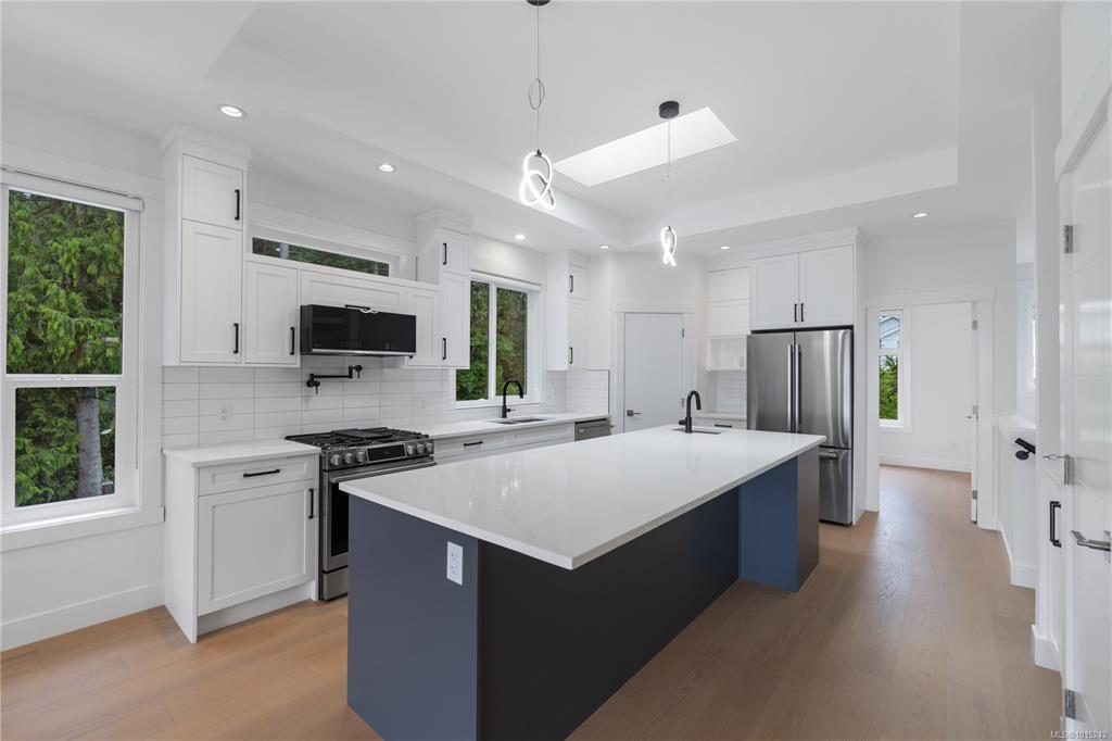 Experience stunning ocean views from this semi-custom 6-bed, 4-bath home in Hammond Bay, offering 3,230sqft of contemporary living and a 2-bed legal suite. The open-concept main level is designed for both style and function, showcasing a modern kitchen with quartz counters, stainless steel appliances, and an eat-in island flowing into bright dining and living areas with access to a covered deck. The primary suite offers a W.I.C, 4-pc ensuite, and deck access, while three additional beds, a full bath, and la...