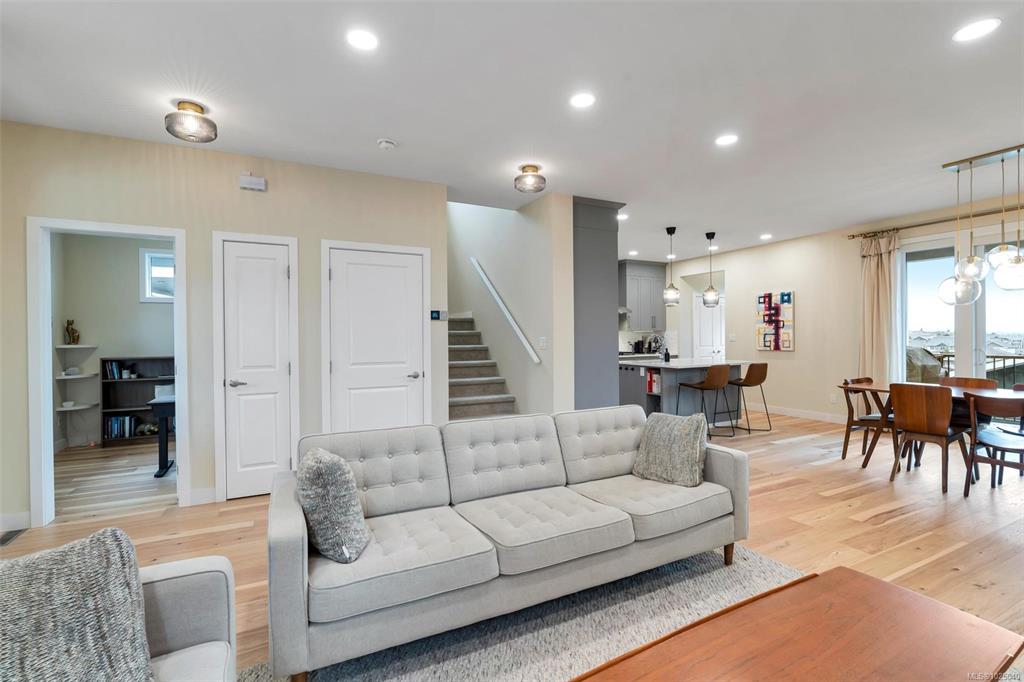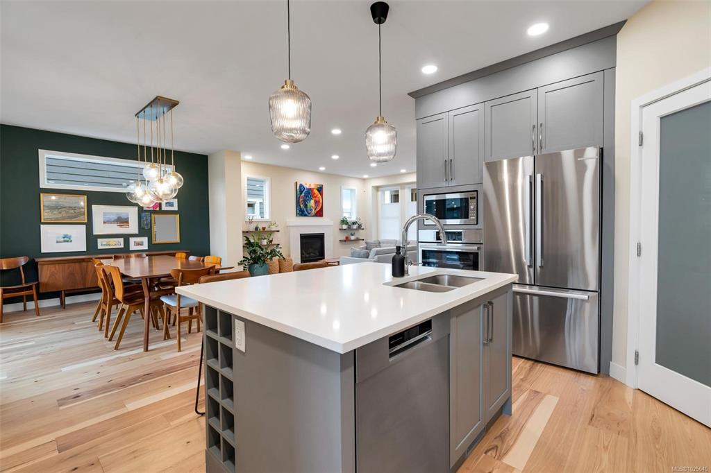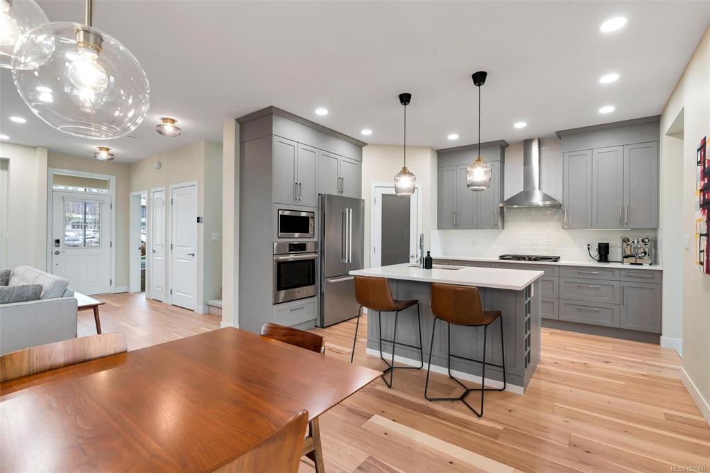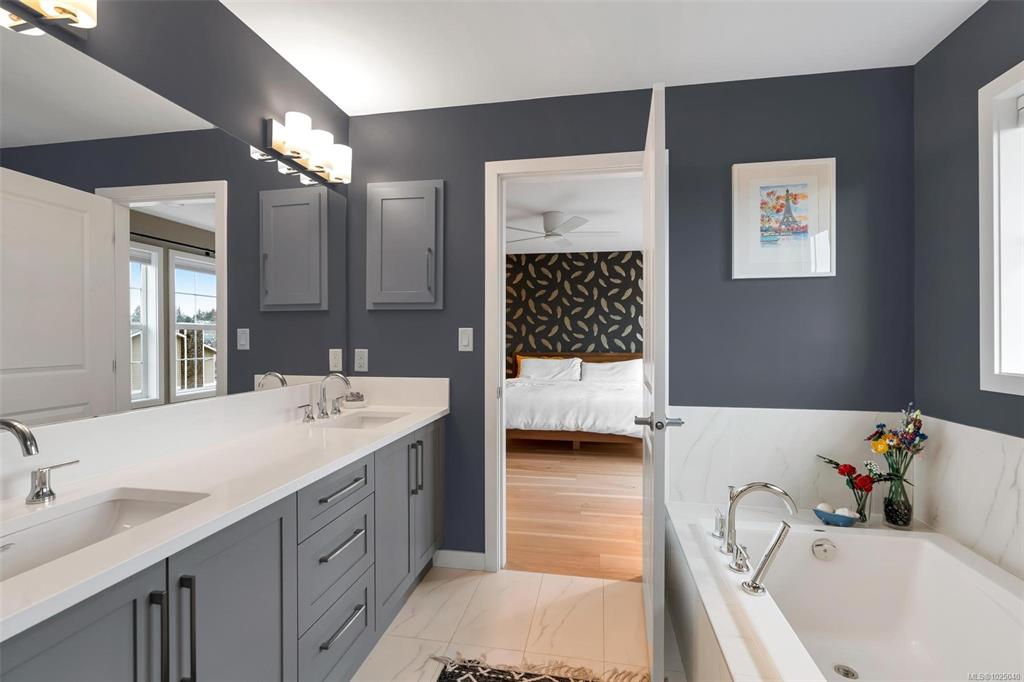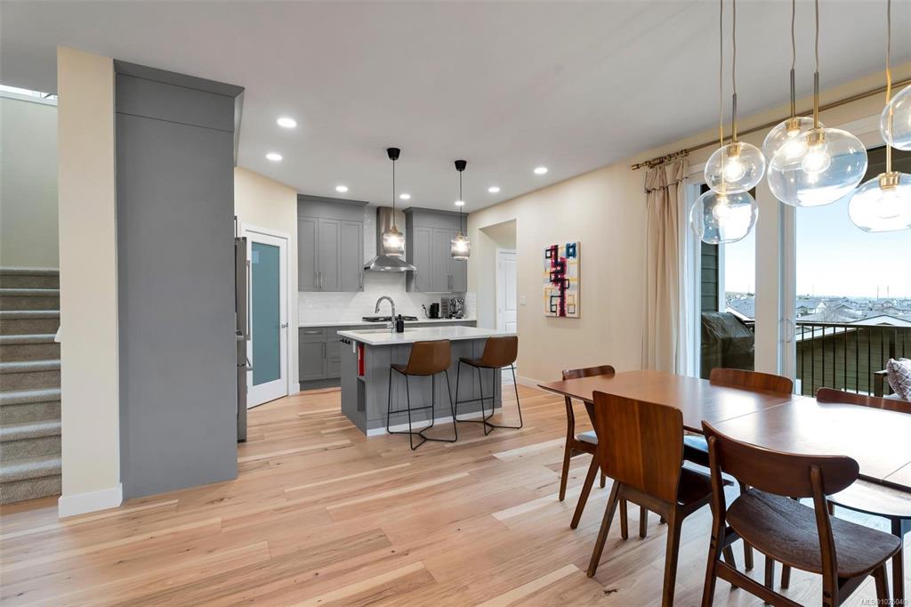 Immaculate 2020 built 4 bedroom, 4 bath family home in Royal Bay. Approximately 2,900 sqft over 3 levels with plenty of space for the family. Open concept main level with gourmet kitchen, upgraded appliances, large pantry, dining area, cozy living room with gas fireplace, and covered deck for the BBQ. Recent interior and exterior paint, beautiful new wood floors on both main and upper levels, and built-in closet organizers. Upper level features 3 bedrooms, laundry, sitting room, and gorgeous primary suite w...
