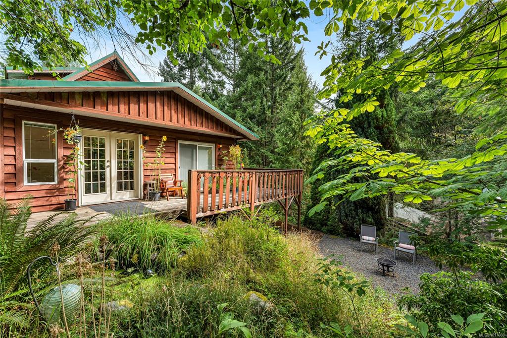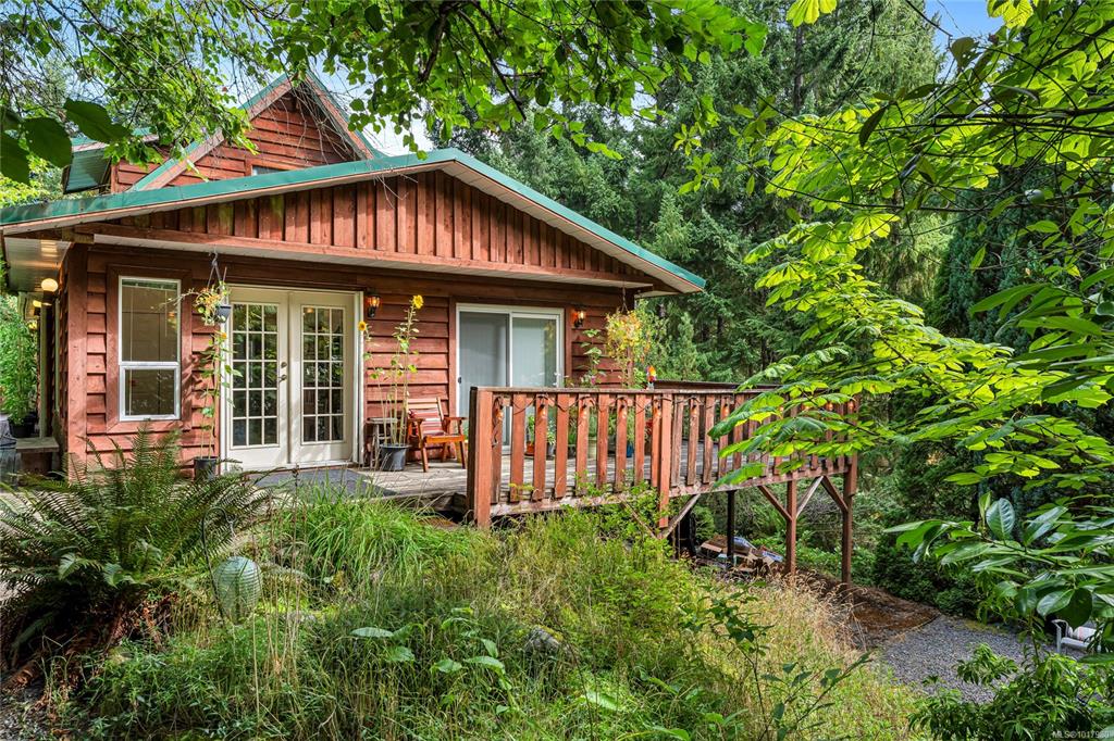 This 10.82-acre property is surrounded by nature and offers complete privacy just 15 mins south of Duncan and 10 mins from the T/C highway. The driveway curves through fir and cedar trees to the 2401 sq.ft. chalet-style house. A tiled entrance leads guests past the master bedroom and office to an open-concept kitchen and a living area with floor-to-ceiling windows and a sliding door out to a full wrap-around deck. The top floor is dedicated to a bedroom with ensuite. Downstairs offers extra living space and...