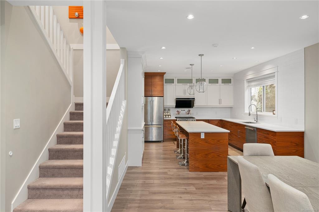 Tucked away in the quiet and sought-after Olympic Ridge community, this elegant 3-bedroom, 3-bath home with a large den blends modern design with everyday comfort. Perfectly positioned at the end of a peaceful street, it is minutes from Royal Bay Secondary, Red Barn Market, scenic parks, Olympic View Golf Course, and public transit, with Starbucks, shops, and conveniences just a short drive away. The main level welcomes you with 9-foot ceilings and a bright open-concept living, dining, and kitchen area desi...