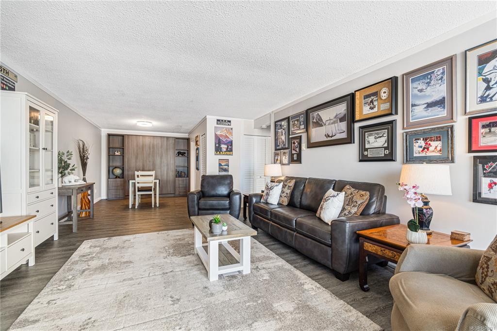 *Waterfront living in Nanoose Bay!* This beautifully updated 1 bed, 1 bath, 876 sq.ft. condo offers sweeping views of the Salish Sea from a large balcony—Perfect for soaking up coastal life. This unit offers one of the largest 1-bedroom floorplans in the complex, featuring a spacious primary bedroom and an open-concept living and dining area with a custom Murphy bed—ideal for hosting guests. Tastefully updated with newer flooring, appliances, cabinets, and tile backsplash. Located just minutes from the Fair...