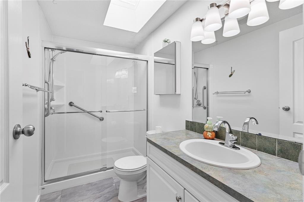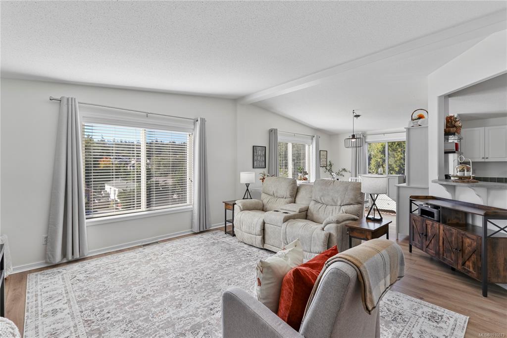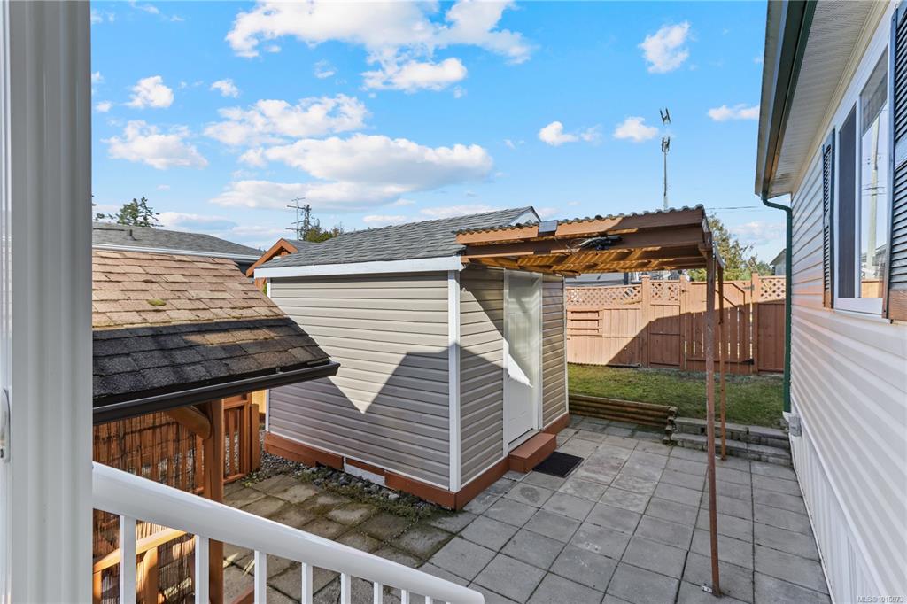 Bright, spacious & impeccably maintained, this home features a private setting with mature landscaping, patio area, cabana/tiki hut, workshop & space for gardens. Inside, the home feels open & airy with a spacious living & dining area, large windows, two skylights, & heat pump for efficient heating & cooling. The kitchen showcases stylish white cabinetry, stainless steel appliances including a new dishwasher, & newer flooring. The primary bedroom includes a 4-pce ensuite, while the 2nd bedroom & den provide...