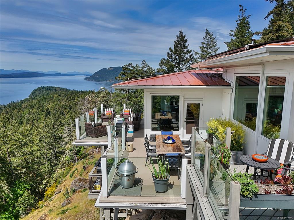 Commanding 180° southern ocean views, this 4,242 sq. ft. custom estate sits on 10 acres between Vancouver and Victoria. A brand-new Wolf kitchen, three ensuite bedroom retreats, executive office, and solar-forward design showcase luxury and sustainability. Expansive 2,200 sq. ft. decks frame whales, eagles, and endless sunsets. A secondary drive leads to a future guest cottage site. Rarely does a property combine architectural distinction, and world-class views at this scale. Come Feel the Magic!