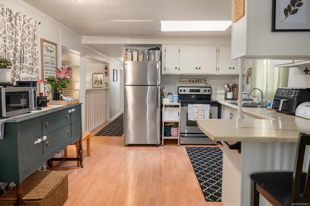 This well-maintained 2-bed, 1-bath mobile home offers excellent value with recent renovations. Enjoy new carpets and updated flooring in the entrance, laundry area, and dressing room. The home features newer vinyl windows, plus significant back wall improvements including new plywood, triple papering, daylight glass, and updated flashing. Exterior upgrades include new siding on one side, freshly stained shiplap at the front, new soffits, and updated skirting. The roof was redone about 6 years ago. Additiona...