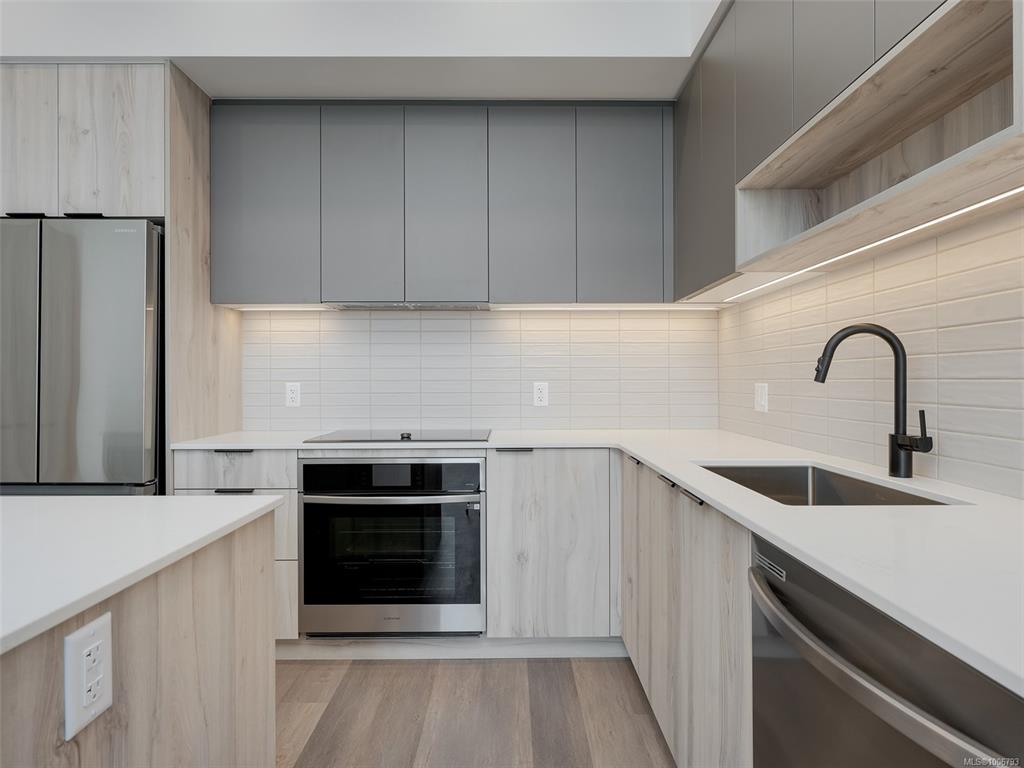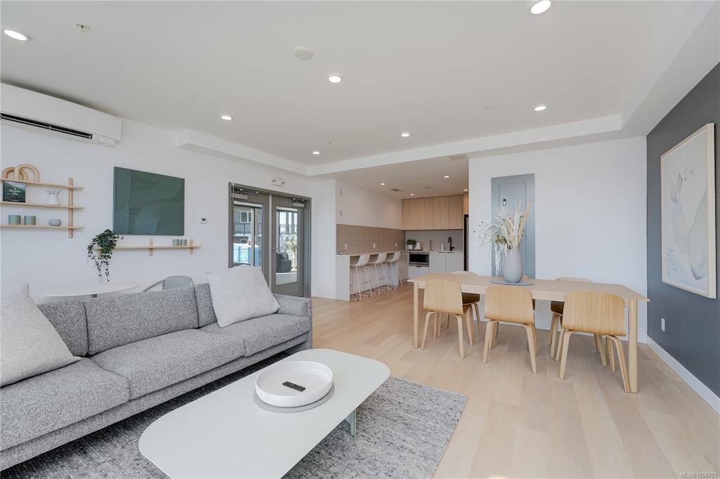 TOP FLOOR, ENDLESS OCEAN & OLYMPIC MOUNTAIN VIEWS! Your dream lifestyle awaits you at recently completed Eliza where you'll enjoy not only this building's GREAT amenities but just cross the street to buy your groceries, visit the dentist or meet your friends for coffee or a pint! Select few units have the 14' vault ceilings with an unimpeded view over the low-rise COMMONS commercial block - open your door to the ever-changing marine vista, be captivated from sunrise to sunset by light, weather & ships from ...