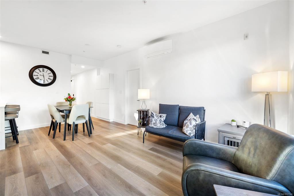 Experience coastal living in this like-new 2 bed, 2 bath condo in the heart of Royal Bay, all with NO GST. Offering ~900 sq ft of modern design with upgraded vinyl flooring, custom cabinetry and built-in closet organizers. The spacious covered patio with private access captures both morning and evening sun. This unit includes two side-by-side EV potential parking stalls, a storage locker, pet wash station, community garden and BBQ area, bike storage, and a common rooftop patio and premium gym in the sister ...