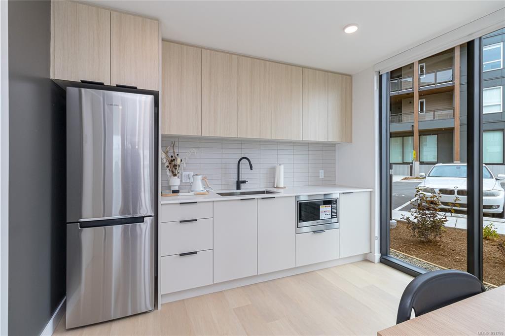 Brand new 1 bed + den condo at Eliza in desirable Royal Bay. This bright and spacious unit features an open-concept living/dining area with large windows and high ceilings, allowing for abundant natural light. The contemporary kitchen includes high-end appliances, sleek cabinetry, and modern countertops. A versatile den is suitable for a home office or guest room. This unit comes with an EV charger. Enjoy outdoor living on the generous private balcony. Building amenities include a fitness centre, rooftop t...