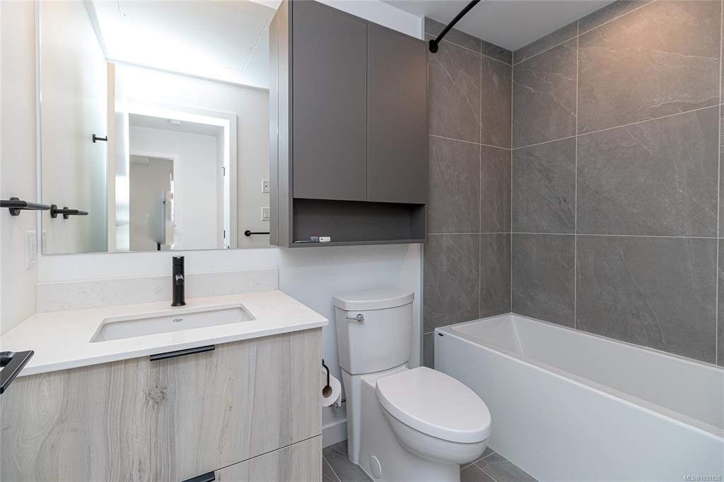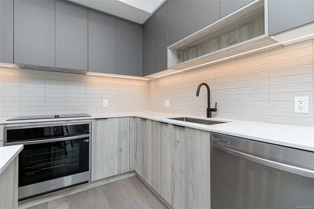 Welcome to The Eliza at Royal Bay! This spacious 2 bed, 2 bath condo offers a bright, open-concept layout with high ceilings and large windows. The modern kitchen features a large island, quartz countertops, and high-end appliances—perfect for entertaining. The primary bedroom includes a well-appointed ensuite, with a second bedroom ideal for guests or home office. This unit Includes 2 parking stalls with EV charging. Building amenities feature a fitness centre, rooftop terrace, party room, and community ga...