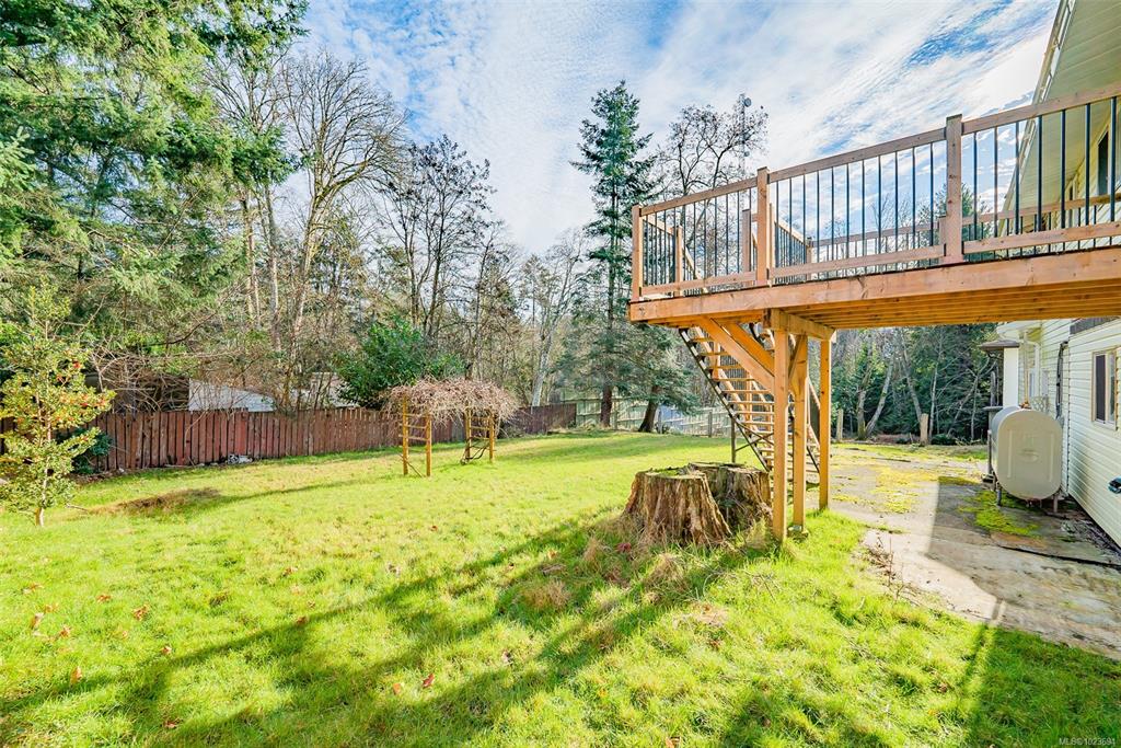 Located on a quiet side street in the heart of the Uplands area of North Nanaimo, this basement entry home features a large yard, carport, single garage addition, and plenty of parking. The home will enjoy plenty of morning sunshine with its east-facing yard and kitchen and dining room windows, and small rebuilt deck. Three bedrooms on the main level with spacious living room, dining, and kitchen, all part of this traditional plan. The lower level has the 2nd bathroom, laundry, family room, and door to carp...