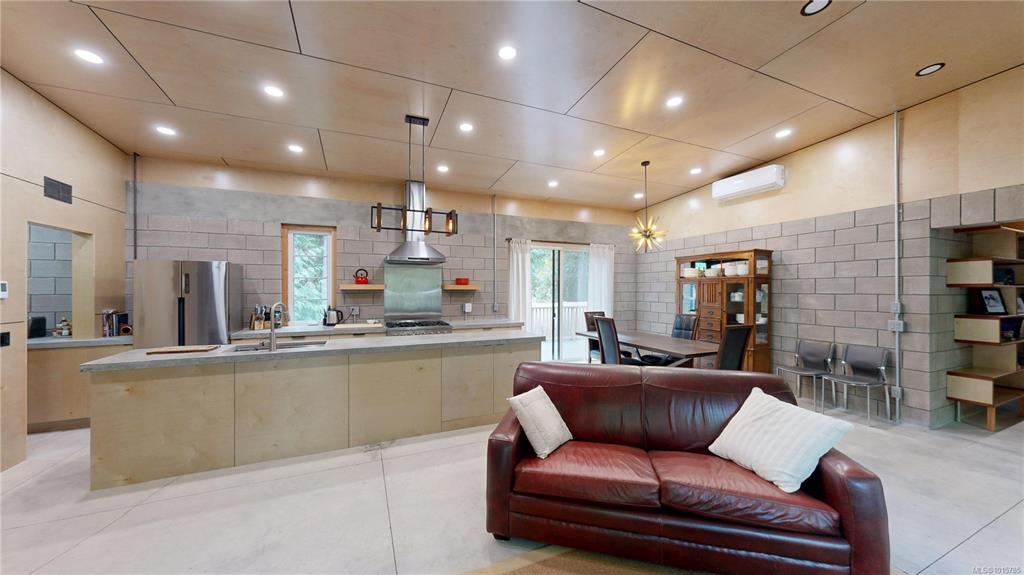 Fully engineered and masonry-built, the home is designed for durability and efficiency with a metal roof, vaulted ceilings, wood beams,solid masonary with 16" thick walls and in-floor heated concrete throughout.Step through the edge-grain fir door into this custom designed 2-bed/2-bath Modern home where comfort meets low-maintenance living.A heat pump and a custom fireplace keep things comfortable year-round.The open-concept living area flows outdoors through multiple patio doors.The cook’s kitchen features...