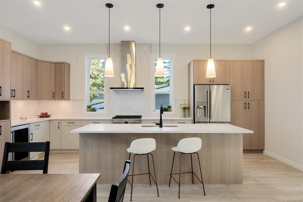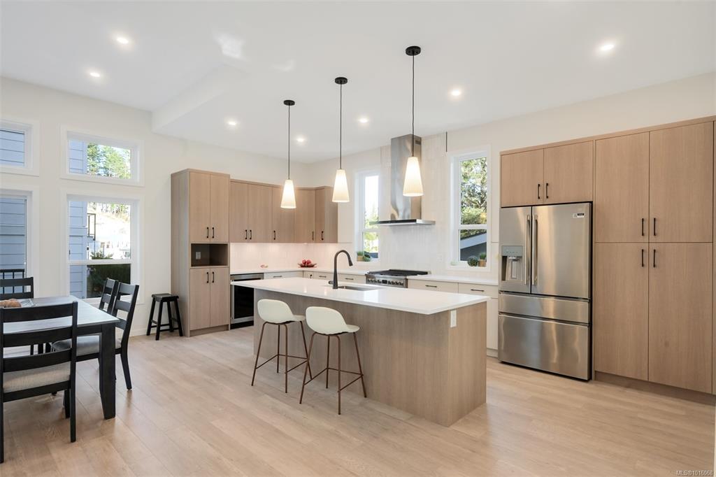 Move-in ready home in The Heights at Olympic View! Built by Windcrest Developments Ltd., a local, 3rd-generation award-winning builder w roots in the community since 1981, offers 2,093 sq ft of contemporary West Coast design. The upper level features bright, open living w a modern kitchen, natural gas cooking, under-cabinet lighting, spacious dining area, + two patios—one ideal for the BBQ and another for quiet relaxation. The primary bedroom incl vaulted ceilings, his-and-hers walk-in closets w organizers,...