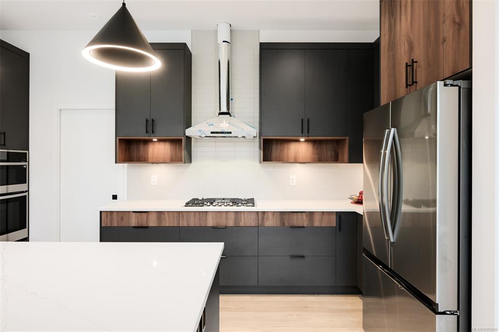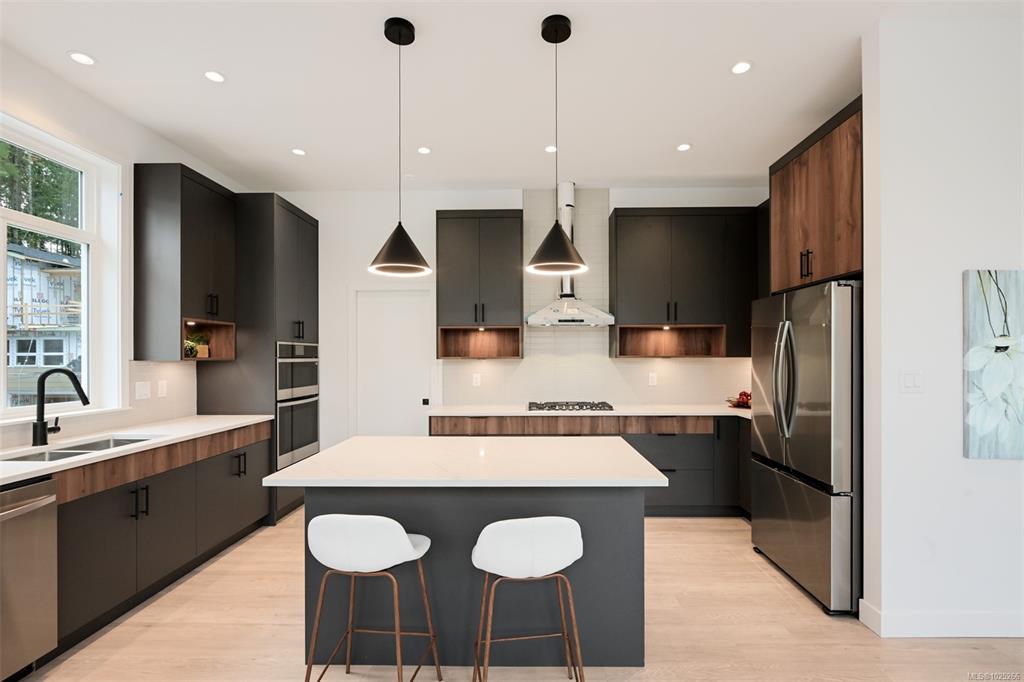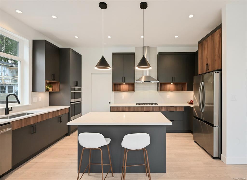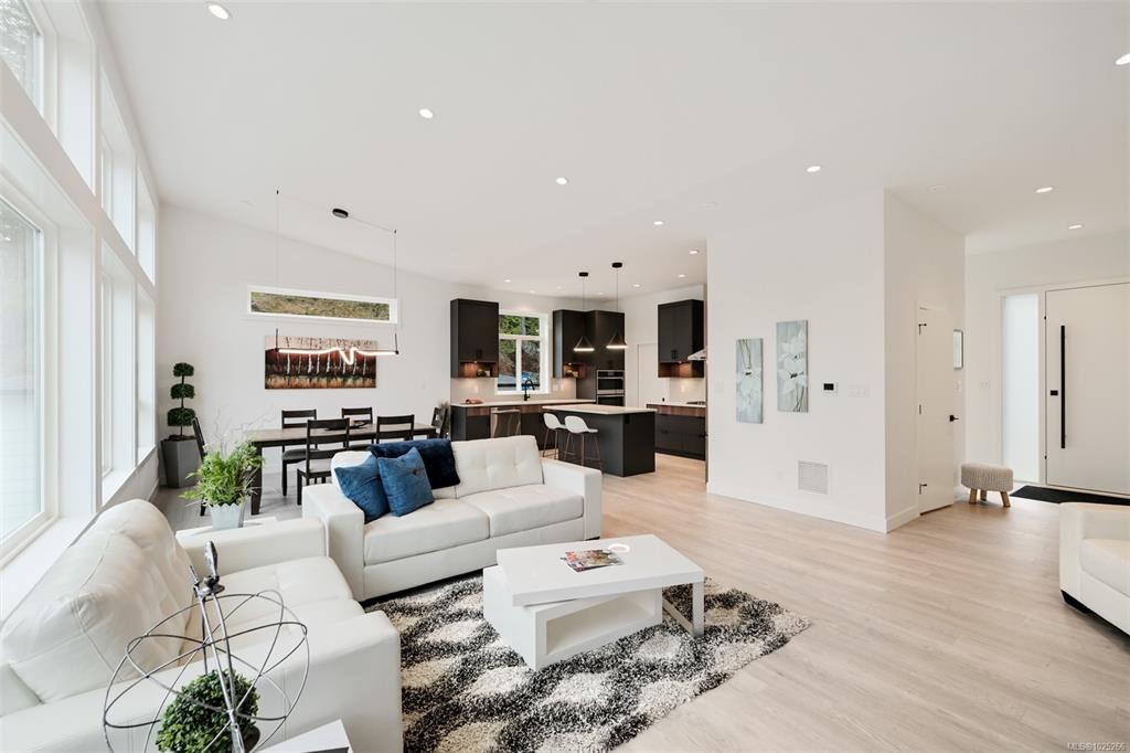 Welcome to The Heights, a boutique controlled subdivision in Langford’s desirable Olympic View area. This 2,294 sq ft Hudson floor plan offers a reverse living layout suited to a low-maintenance lifestyle and is move-In ready. The upper level is designed for entertaining w a modern kitchen, open living and dining areas, abundant natural light, and elevated views toward Triangle Mountain. The lower level features three bdrms, a family/media room w walk-out access to a private, fenced backyard & a bonus s...