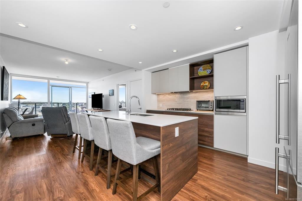 Elevated on the 11th floor, this 2 bed/2 bath home showcases sweeping panoramas of the city, ocean & mountains - enjoyed from both the expansive 179 sq. ft. balcony & the light-filled interior. Inside, luxury flows through an open-concept plan anchored by a chef’s kitchen with quartz island, gas range & custom cabinetry - equally perfect for weeknight dinners or weekend entertaining. The primary suite feels like a private retreat with a walk-through closet & spa-inspired ensuite. A thoughtfully separated se...
