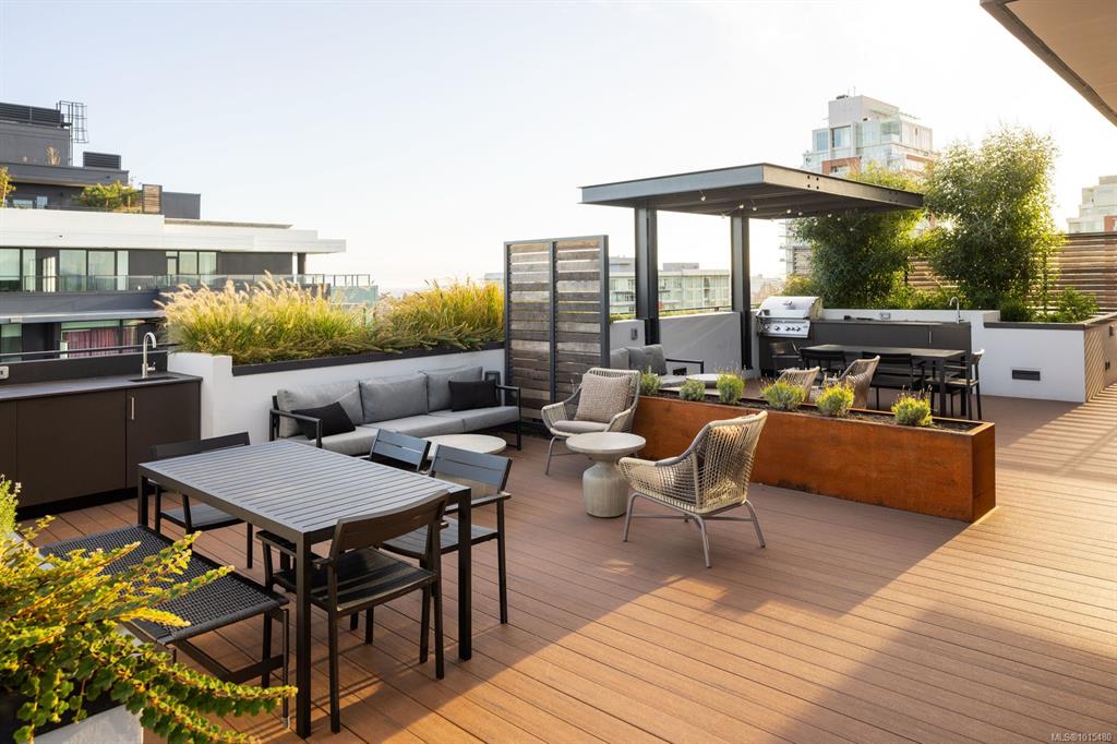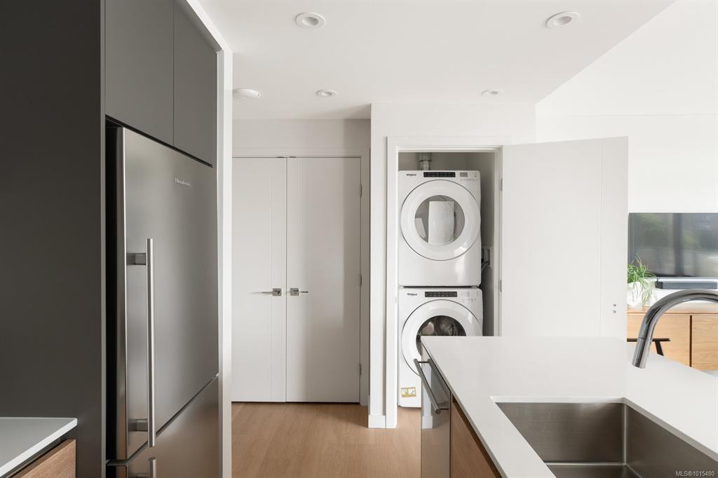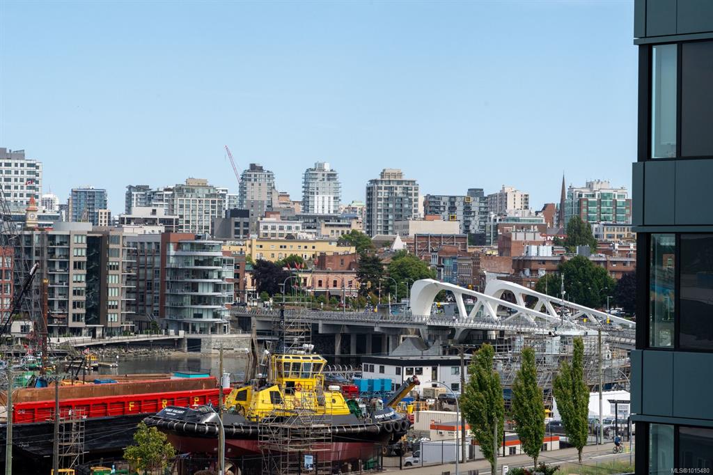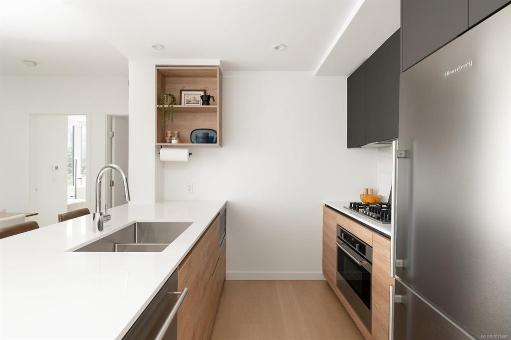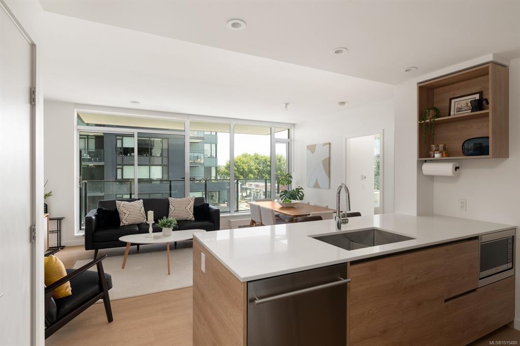 Discover elevated living in this refined 2-bedroom, 2-bathroom suite at Dockside Green by BOSA, built in 2023 and under full warranty. This southeast-facing corner home offers captivating views from its spacious balcony. Inside, a chef’s kitchen showcases a quartz peninsula with seating for four, a gas range, eye-catching backsplash, Stosa Italian cabinetry, and ample storage. The primary bedroom features a walk-in closet and spa-like ensuite with a no-step shower. The second bathroom includes a deep soaker...