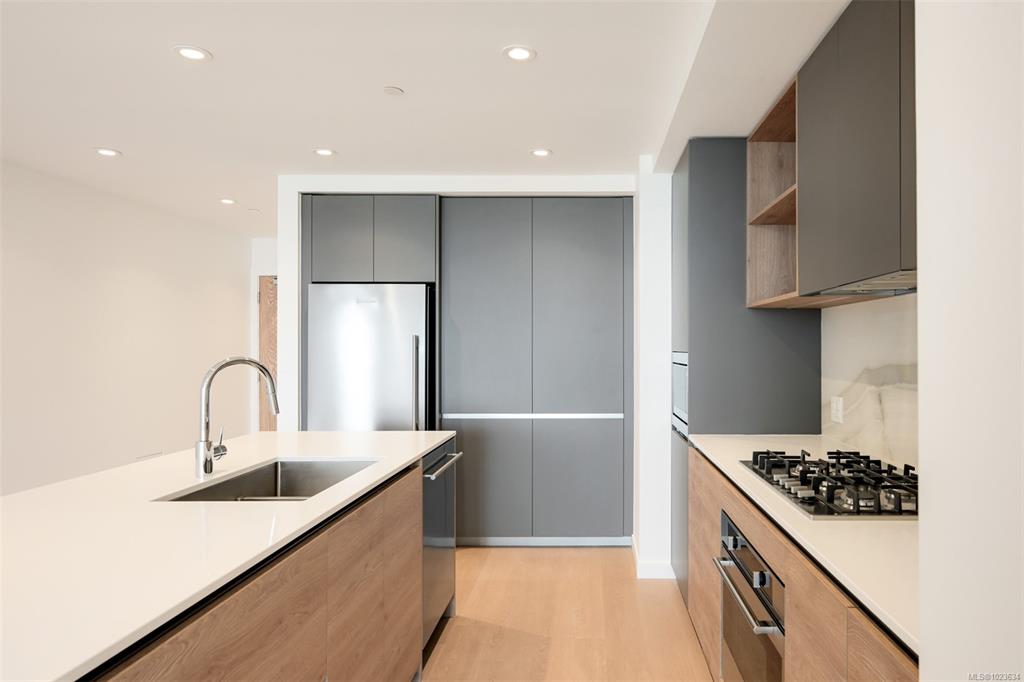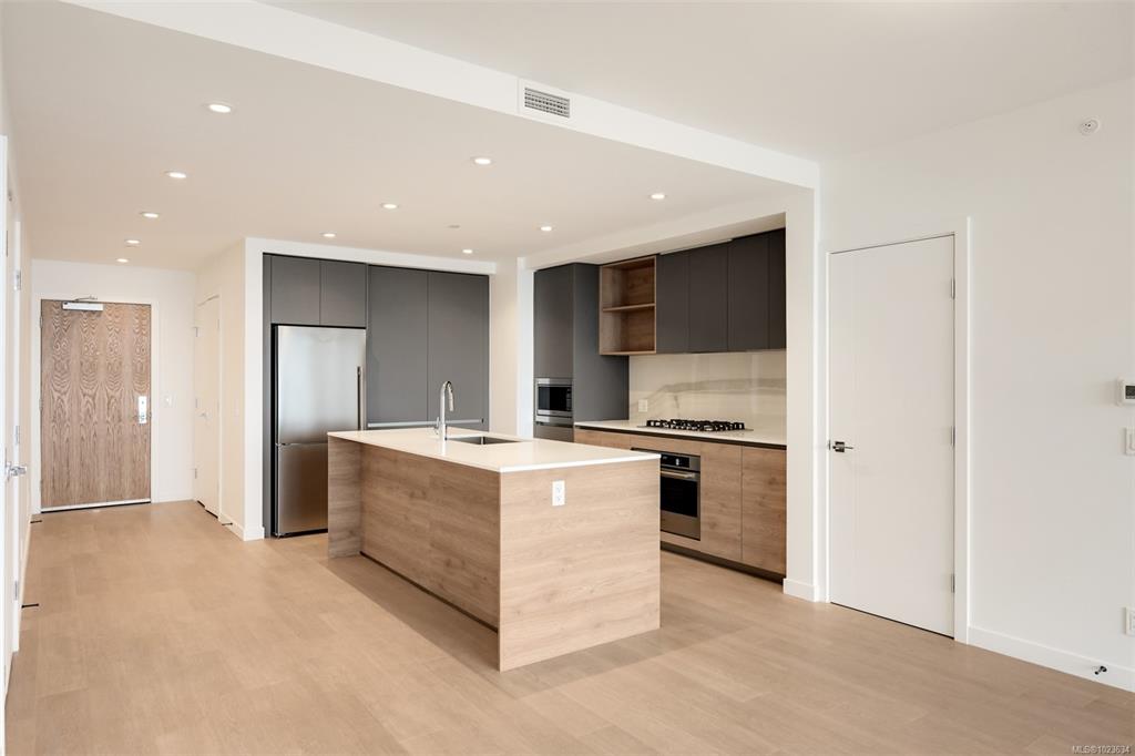 Welcome to Dockside by Bosa Development - 363 Tyee is a 13-storey, concrete building complete and MOVE IN READY. Enjoy Upper Gorge views from your living/dining room. BRAND NEW, designed with livability in mind, this 2 Bed+2 Bath offers 1010 sq.ft of living space and large balcony. The entertainment sized kitchen features Stosa Italian Cabinetry, Quartz Counters, and single slab backsplash. Pair it with high-end appliances: Blomberg Fridge, Dishwasher, Fulgor Milano Oven and Gas Cooktop. Multiple storage ca...