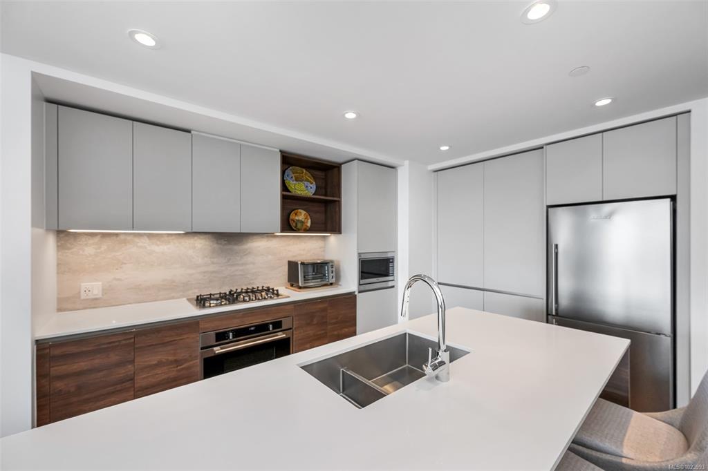 Perched on the 11th floor, this beautifully appointed 2 bed/2 bath home offers sweeping city, ocean & mountain views, enjoyed from both the expansive 179 sf. balcony & the bright, open interior. The open-concept layout is anchored by a chef-inspired kitchen featuring a quartz island, gas range & custom cabinetry, perfectly suited for everyday living & entertaining. The primary bedroom is a true retreat, complete w a walk-through closet, spa-inspired ensuite. A thoughtfully separated 2nd bedroom and full bat...