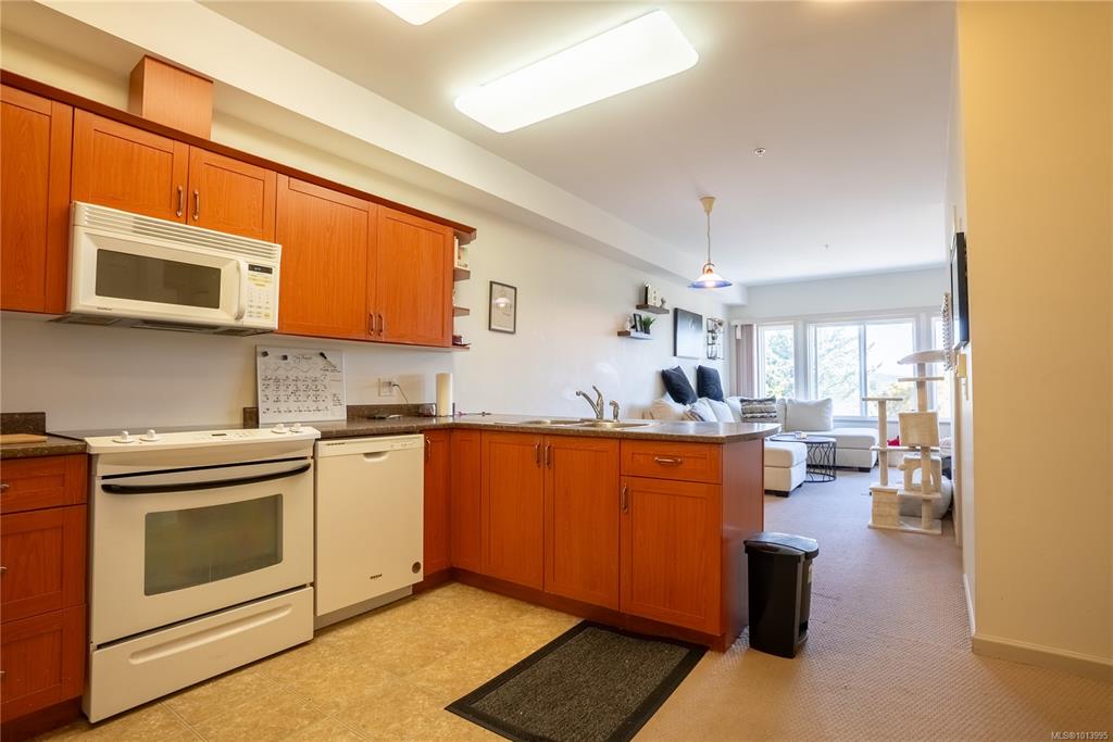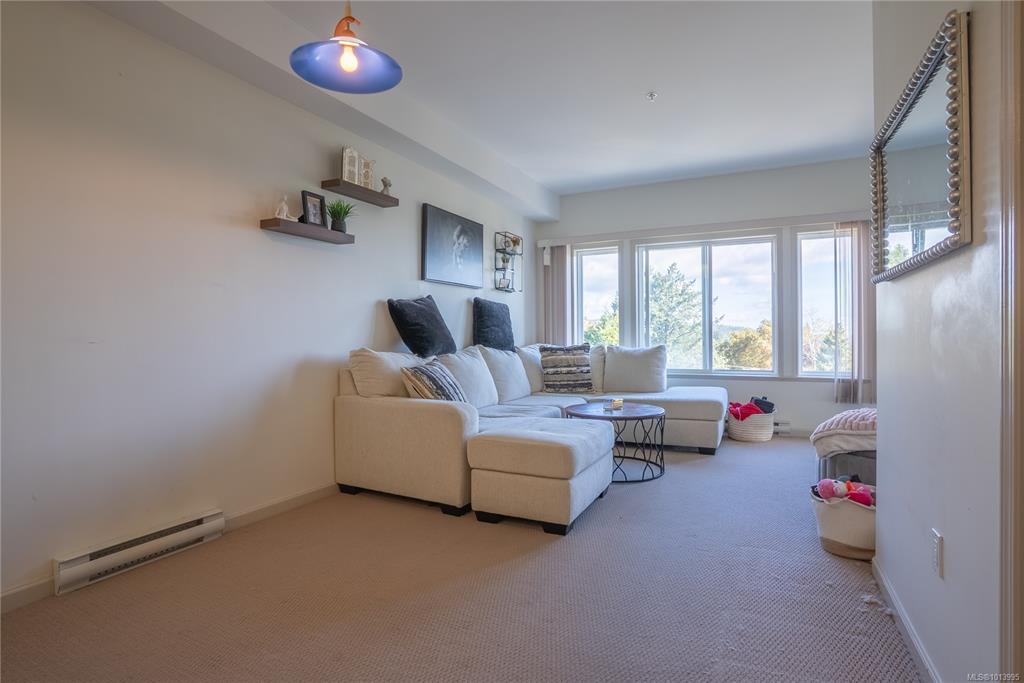 Welcome to Unit 402 at 364 Goldstream Ave – a bright, top-floor 2-bed, 2-bath condo offering 923 sq. ft. of thoughtfully designed living space with 9' ceilings. The open-concept layout features a spacious kitchen with full-sized appliances and ample cabinetry, flowing into the dining and living areas—perfect for everyday living or entertaining. Step out onto the large covered balcony (16'6" x 8'4") for morning coffee or evening relaxation. The primary bedroom includes a large closet and 3-piece ensuite, whi...
