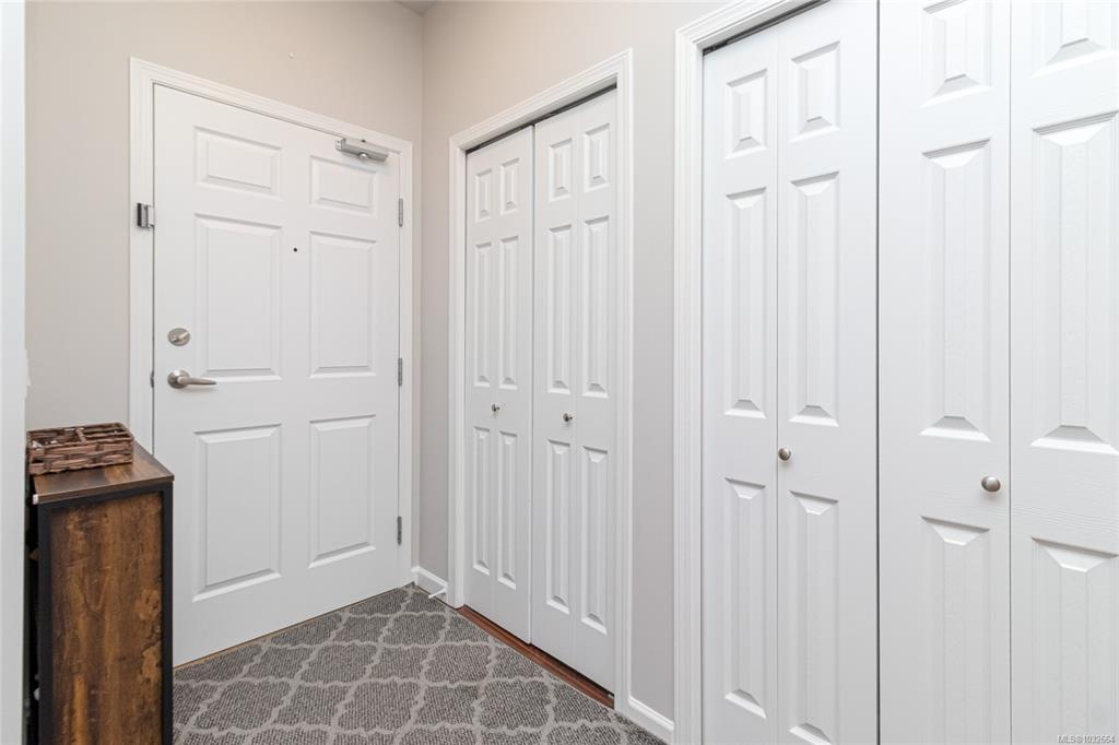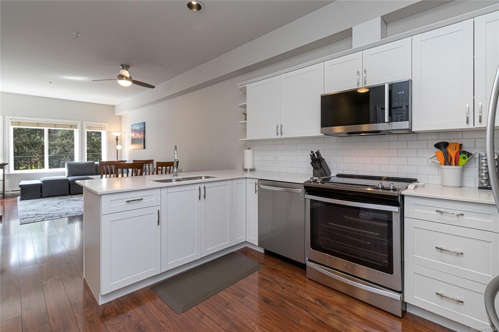 Sun-soaked, south-facing top floor condo overlooking Colwood Golf Course! This beautifully updated 2 bedroom, 2 bathroom home offers a bright, open-concept layout with thoughtful design throughout. The spacious primary bedroom features a walk in closet, ensuite, while large windows fill the living space with natural light and frame peaceful views of towering fir trees. Step out onto your private deck and enjoy the serene outlook. Tastefully updated with fresh paint, new stainless steel appliances, quartz c...