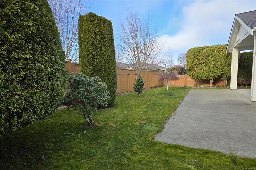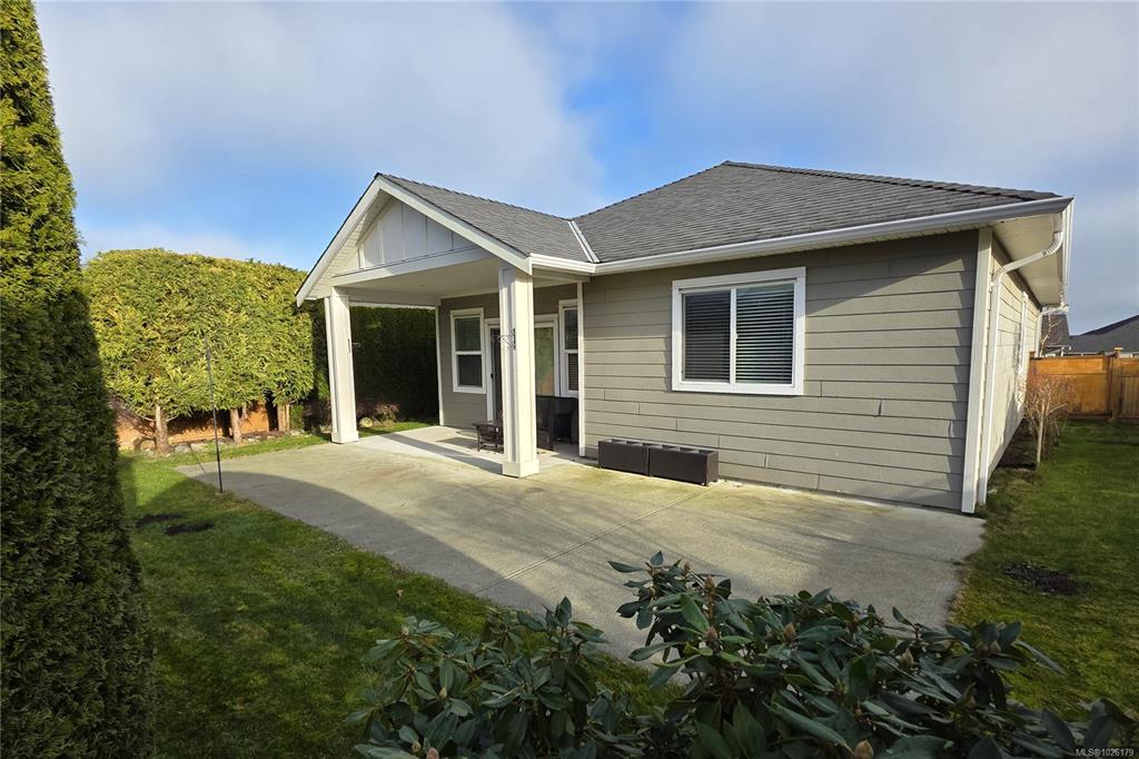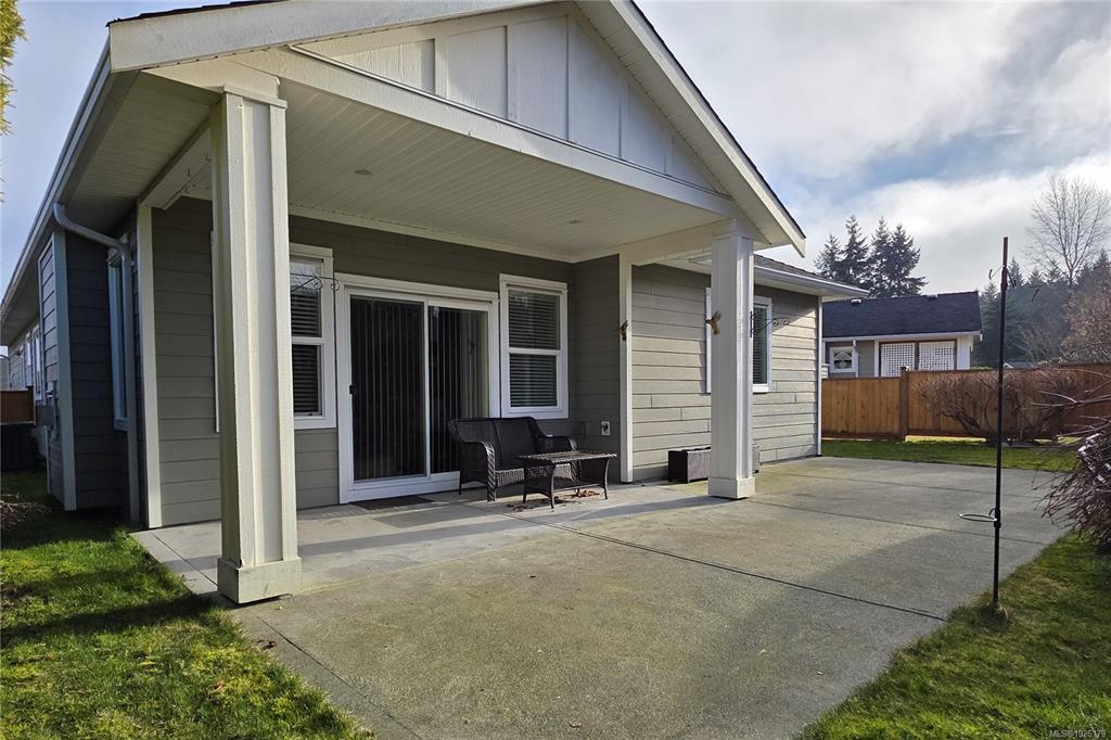 Here is a stand-alone detached patio home in one of Campbell River's most desirable patio home communities. This spacious 3 bedroom 2 bathroom home is tastefully finished, beautifully maintained, and features wide doors and hallways and an open kitchen and great room concept. You have a corner pantry and granite counters in the kitchen, which is open to the dining and living room with gas fireplace and Sliding doors that lead to the large covered patio in the fully fenced private back yard. The primary bedr...