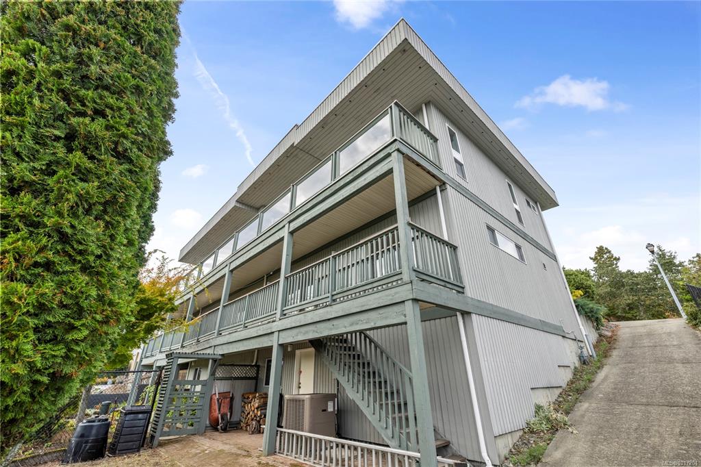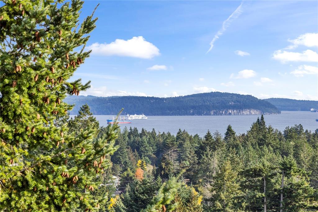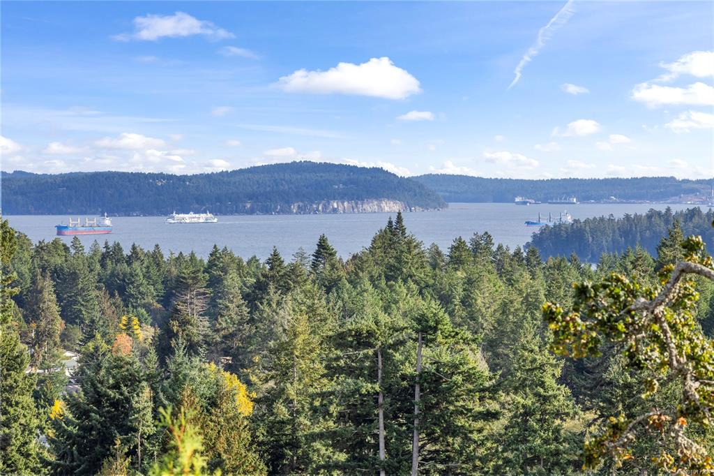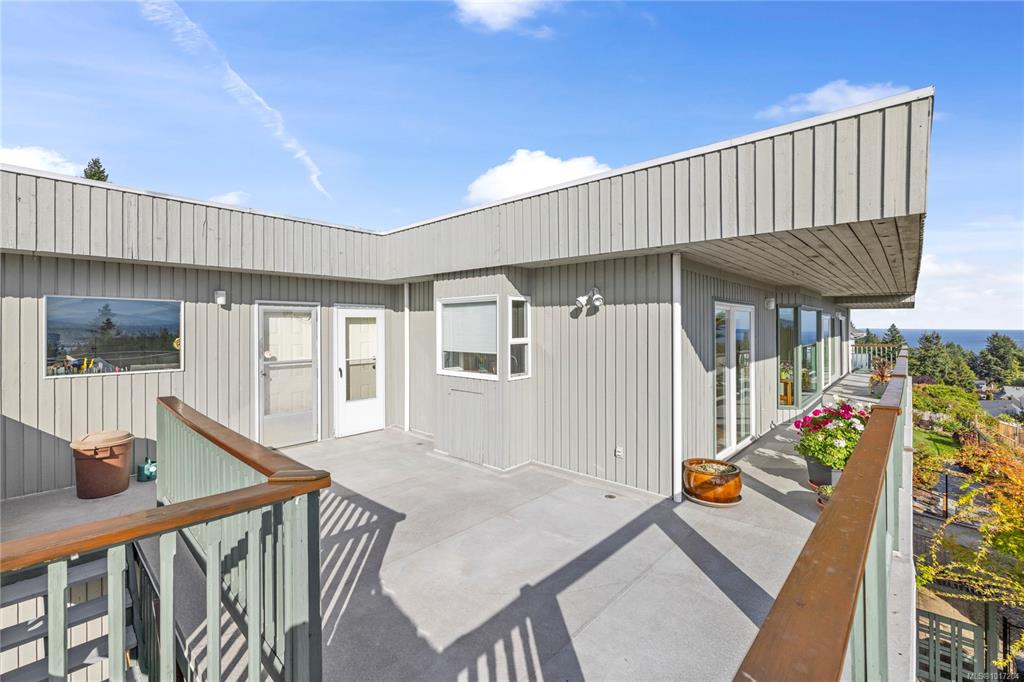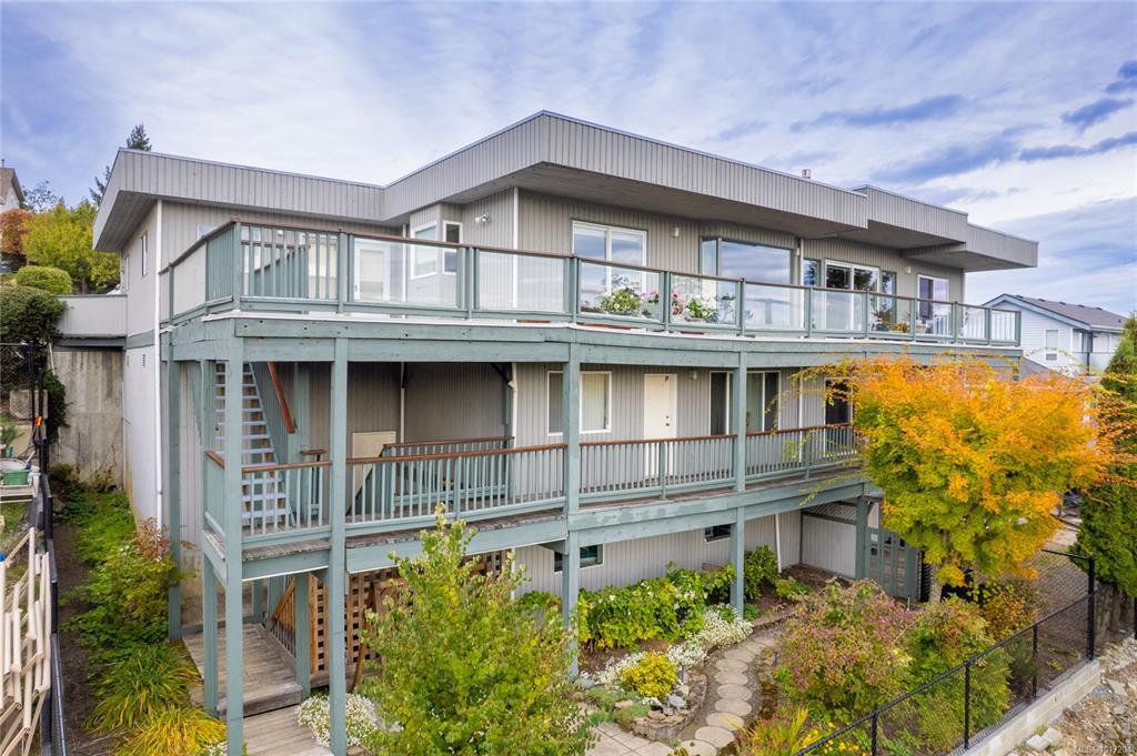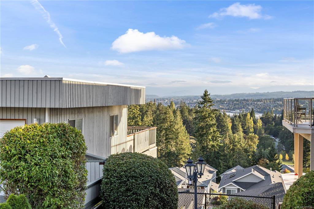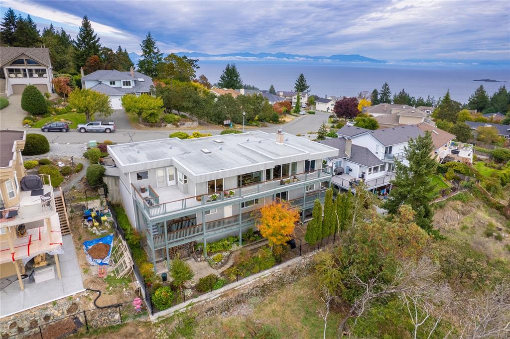 Enjoy stunning panoramic views stretching from the ocean to Mount Benson from this impressive home. Floor-to-ceiling windows and refinished hardwood flooring enhance the main living areas. The spacious kitchen features a large centre island with an eating bar leading to a generous dining room and living room with gas fireplace. The main level includes three bedrooms, including a primary with a three-piece ensuite and walk-in closet, plus a three-piece main bathroom. The lower level offers excellent flexibil...