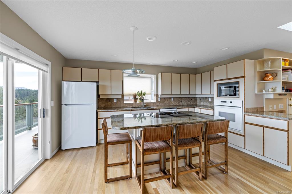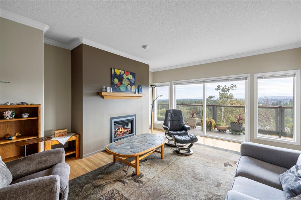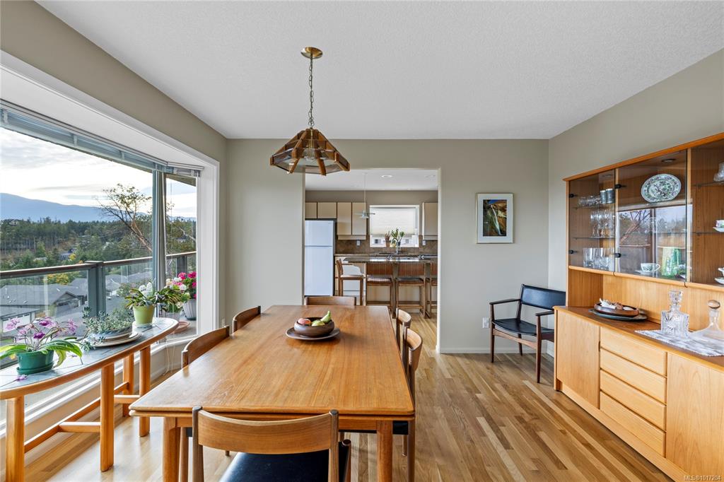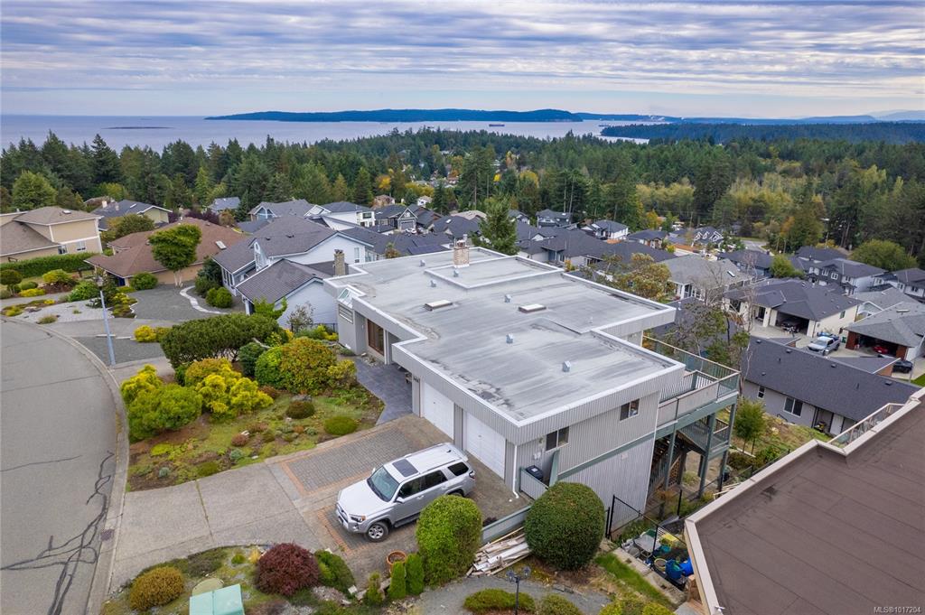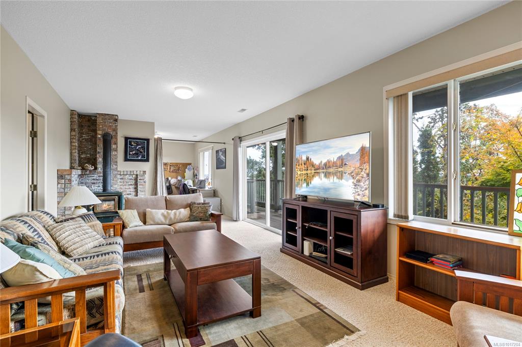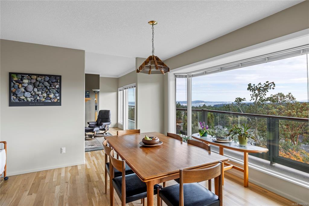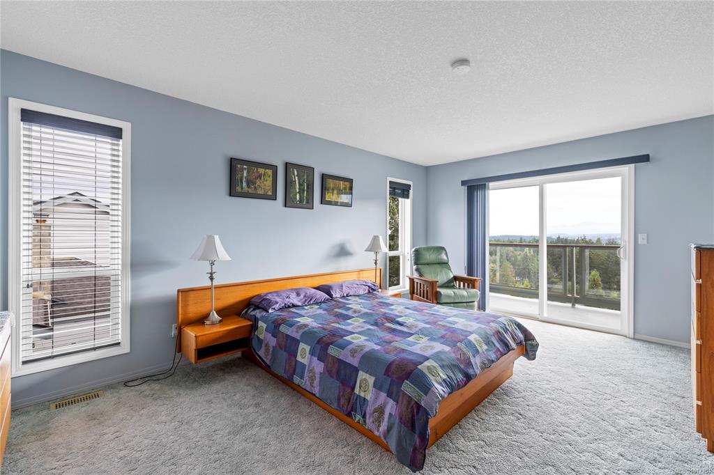 Enjoy stunning panoramic views stretching from the ocean to Mount Benson from this impressive home. Floor-to-ceiling windows and refinished hardwood flooring enhance the main living areas. The spacious kitchen features a large centre island with an eating bar leading to a generous dining room and living room with gas fireplace. The main level includes three bedrooms, including a primary with a three-piece ensuite and walk-in closet, plus a three-piece main bathroom. The lower level offers excellent flexibil...