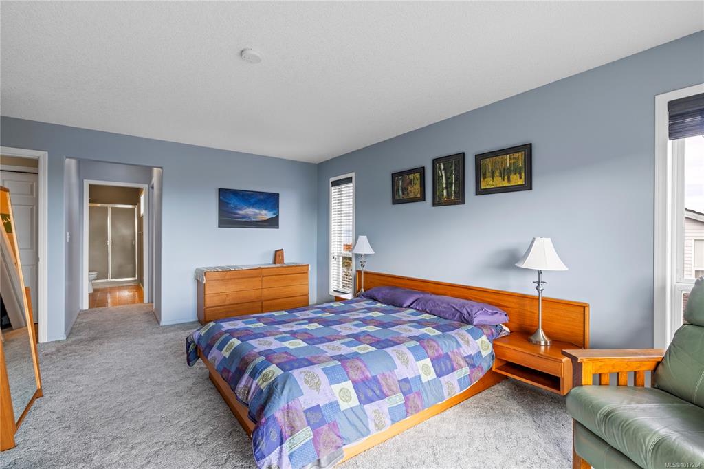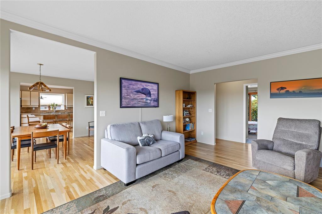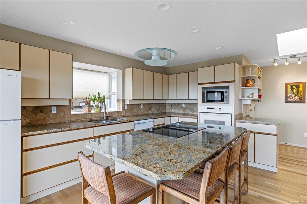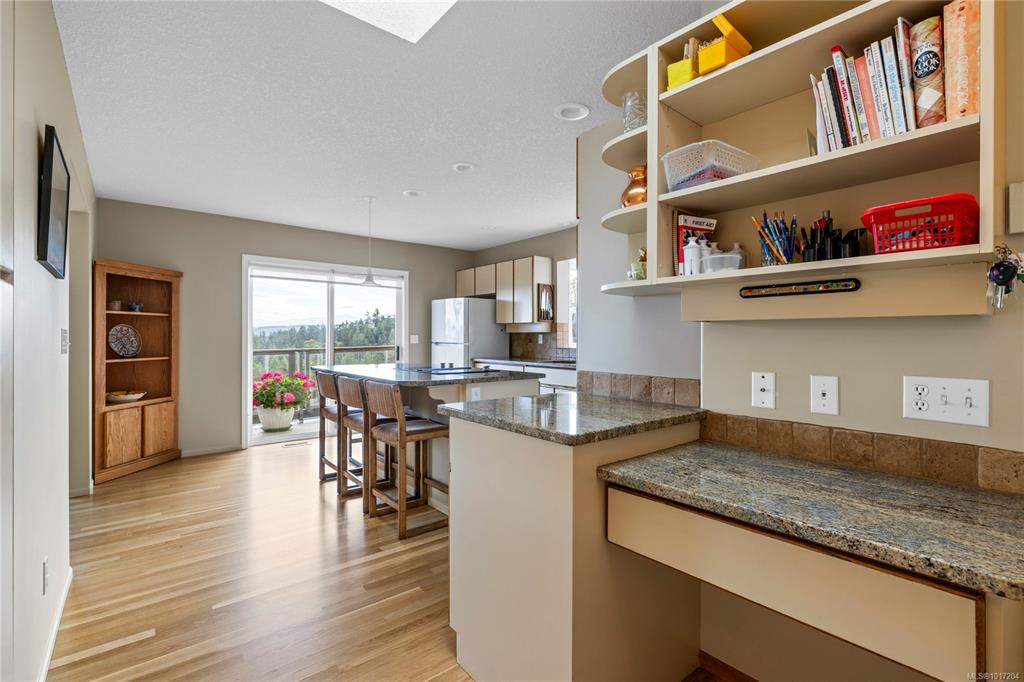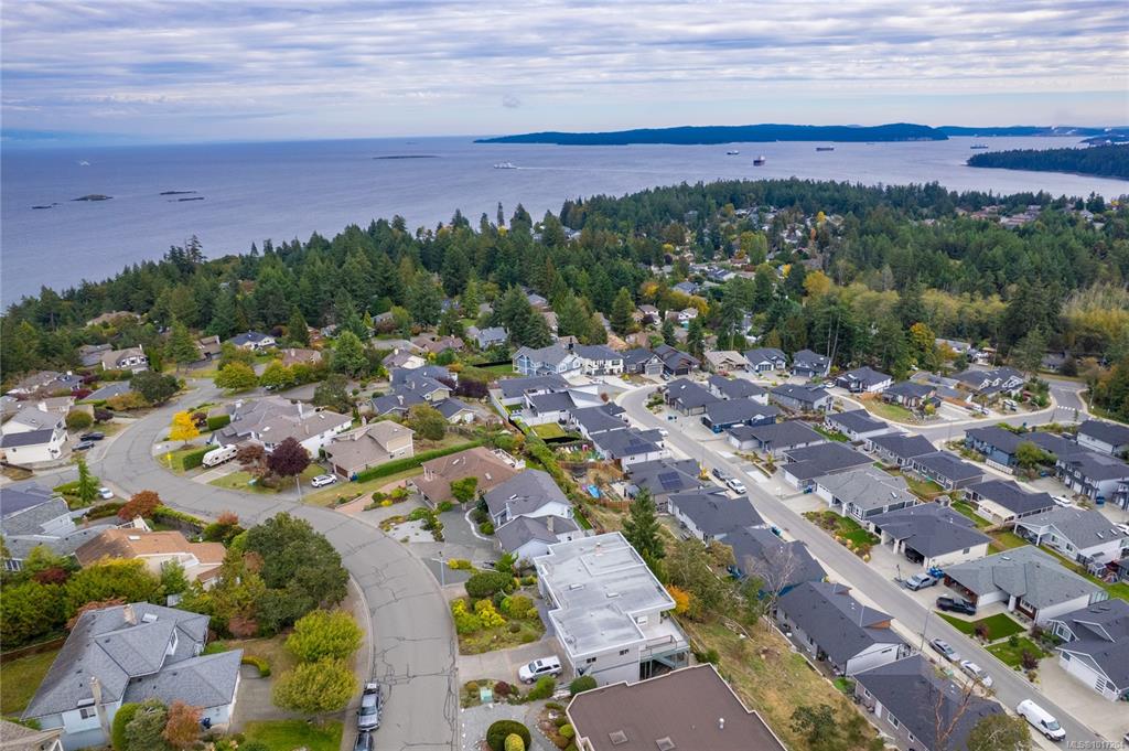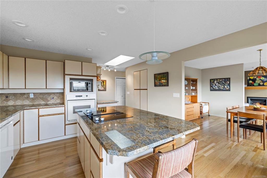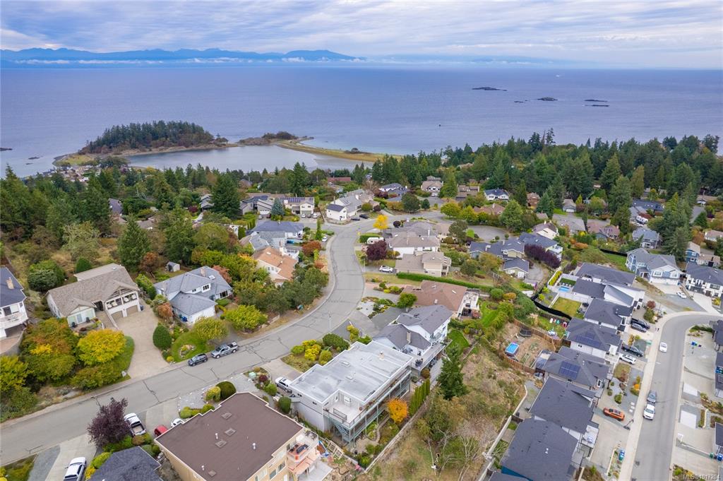 Enjoy stunning panoramic views stretching from the ocean to Mount Benson from this impressive home. Floor-to-ceiling windows and refinished hardwood flooring enhance the main living areas. The spacious kitchen features a large centre island with an eating bar leading to a generous dining room and living room with gas fireplace. The main level includes three bedrooms, including a primary with a three-piece ensuite and walk-in closet, plus a three-piece main bathroom. The lower level offers excellent flexibil...