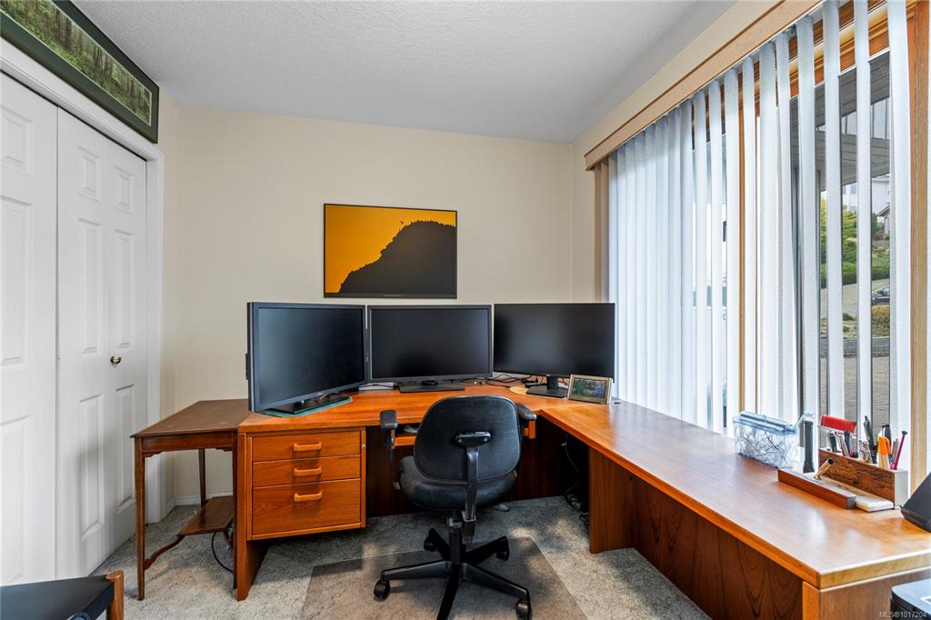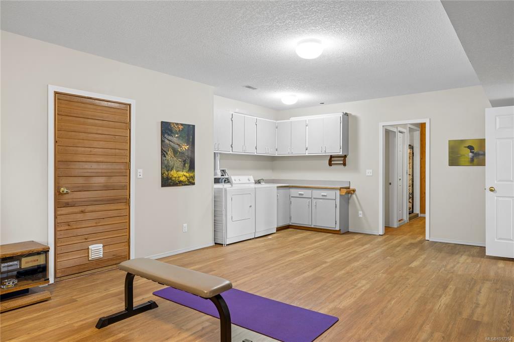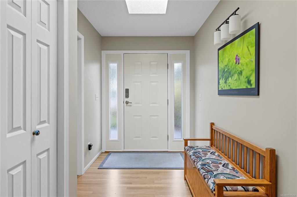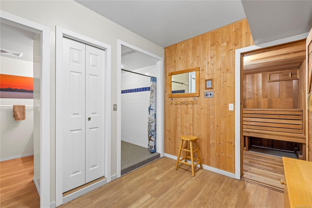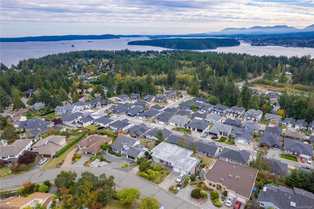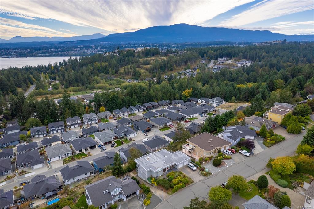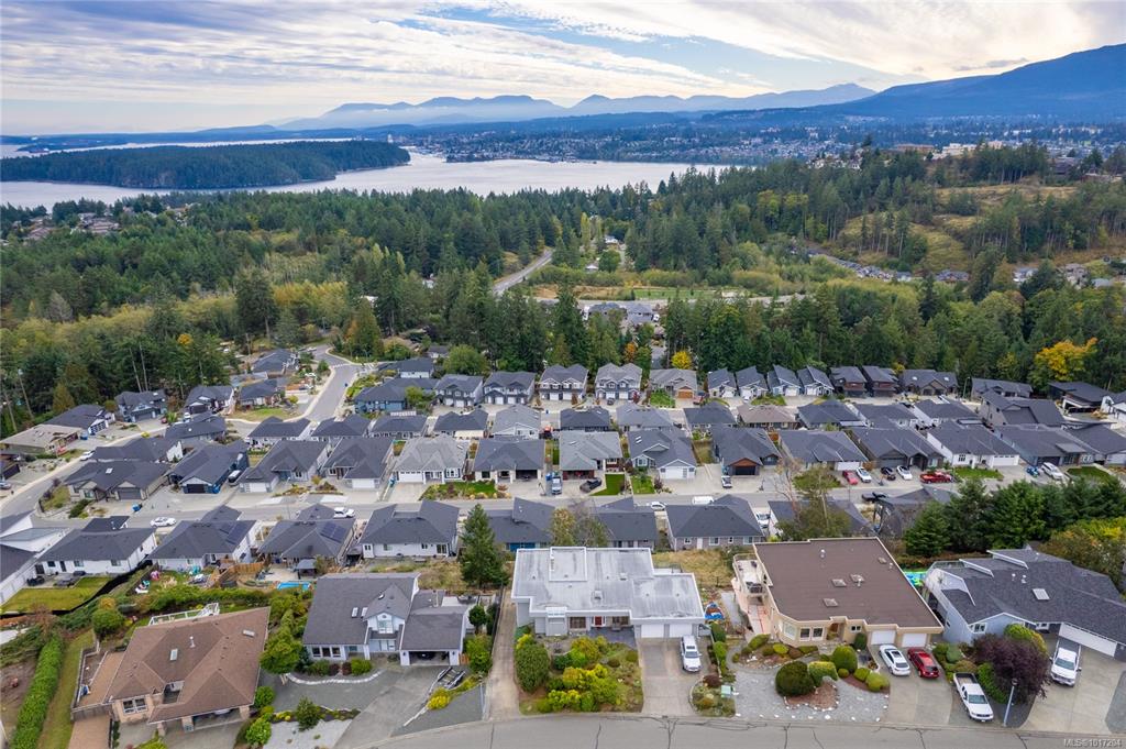 Enjoy stunning panoramic views stretching from the ocean to Mount Benson from this impressive home. Floor-to-ceiling windows and refinished hardwood flooring enhance the main living areas. The spacious kitchen features a large centre island with an eating bar leading to a generous dining room and living room with gas fireplace. The main level includes three bedrooms, including a primary with a three-piece ensuite and walk-in closet, plus a three-piece main bathroom. The lower level offers excellent flexibil...