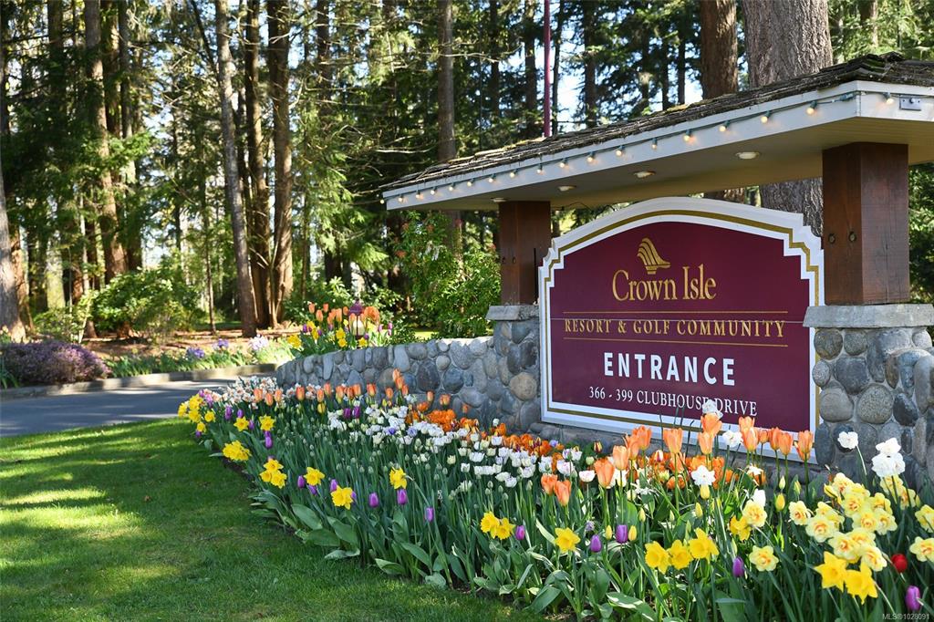FAIRWAY VIEWS from this Quarter Ownership unit at the much sought after Crown Isle Resort & Golf Community Villa's. This ground floor, 1470 sqft unit is nestled in amongst the fir trees on the 1st Fairway with views from tee to green. This suite has a 1 bedroom king with a full kitchen, living area, a patio and includes a "lock-off" second unit of 2 queen beds with a kitchenette and a patio. So use both units or stay in one and leave the other in the rental program, the choice is yours. The quarter ownersh...