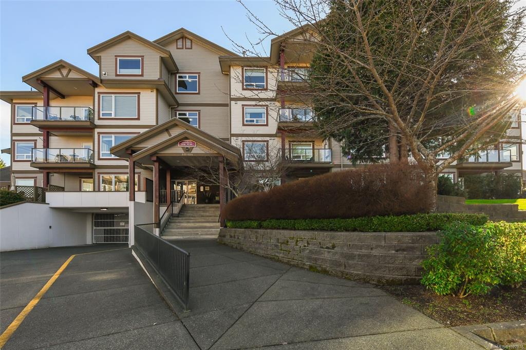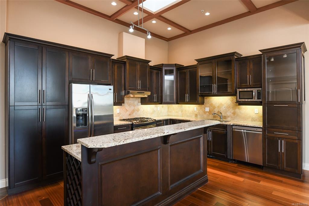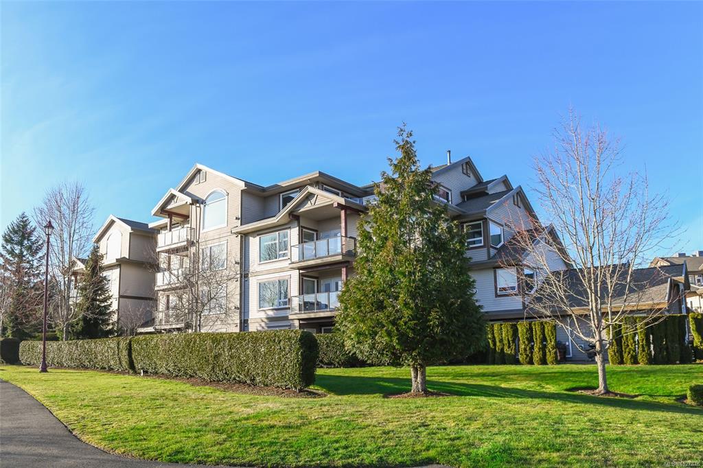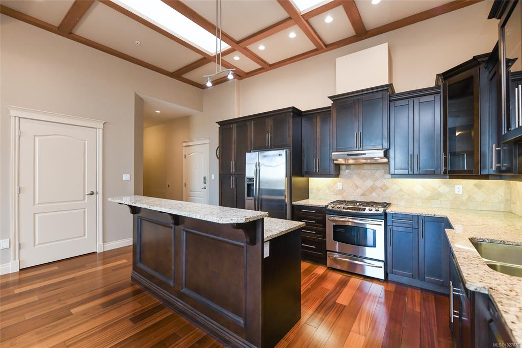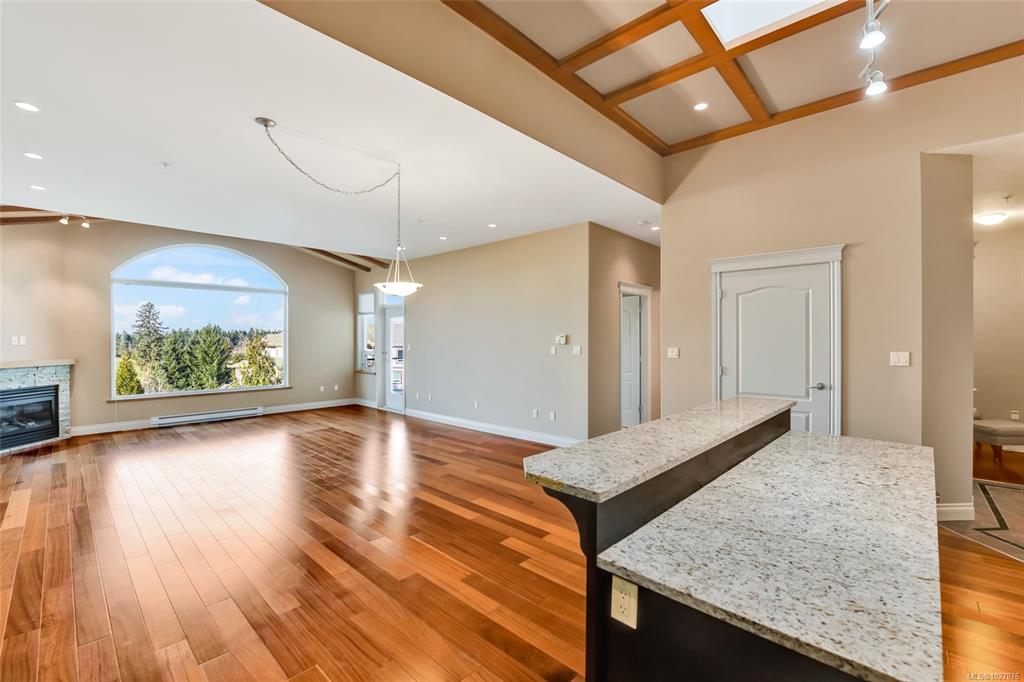A beautiful place to call home at Crown Isle Golf Course. This stunning penthouse-level 2-bedroom + den, 2-bathroom condo offers refined West Coast living with lovely architectural detail. Soaring 12-ft cathedral and tray ceilings with skylights create a bright, elegant atmosphere. The open-concept design features a gourmet kitchen with granite counters, dark cabinetry, and a spacious island flowing into the dining and living areas. Two natural gas fireplaces provide warmth and ambiance. The generous primar...
