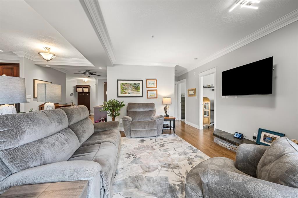 Welcome to Corinthia Estates, this is one of the largest units in the complex, with many lovely updates. This kitchen has it all! Newer stainless appliances, granite counters, warming oven/proofer, garborator, wine fridge and additional built in custom cabinets. Hardwood floors throughout (bedrooms carpet), and custom gas fireplace in the living room. The bathrooms have heated tile floors, custom closets, and both bedrooms are spacious with double aspect windows and filled with sunlight. There is natural ...