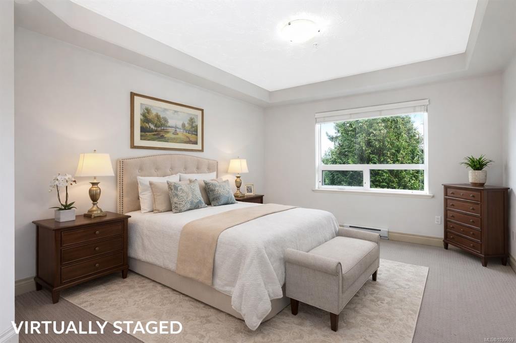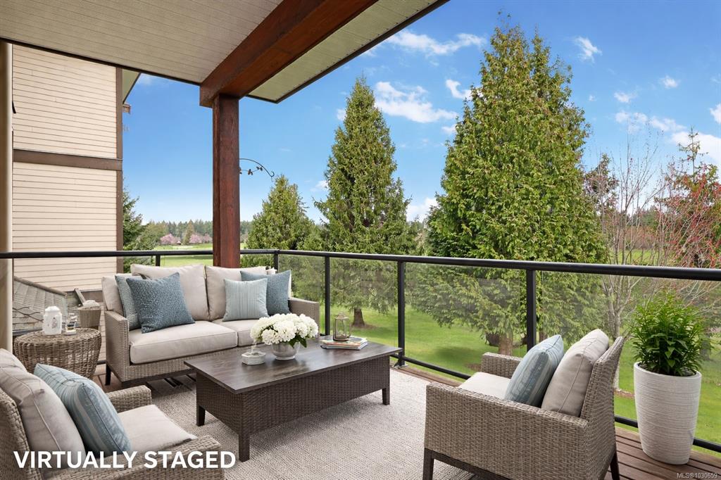 Welcome to sought-after Corinthia Estates! This spacious 1,421 sq ft second-floor condo offers 2 bedrooms, 2 bathrooms, and a den, with stunning golf course views spanning the 3rd, 4th, and 5th fairways. The well-appointed kitchen features rich wood cabinetry, granite countertops, stainless appliances, and a central island with seating. The bright great room offers a cozy gas fireplace and opens to a covered deck—perfect for morning coffee or evening relaxation. The generous primary bedroom includes a large...