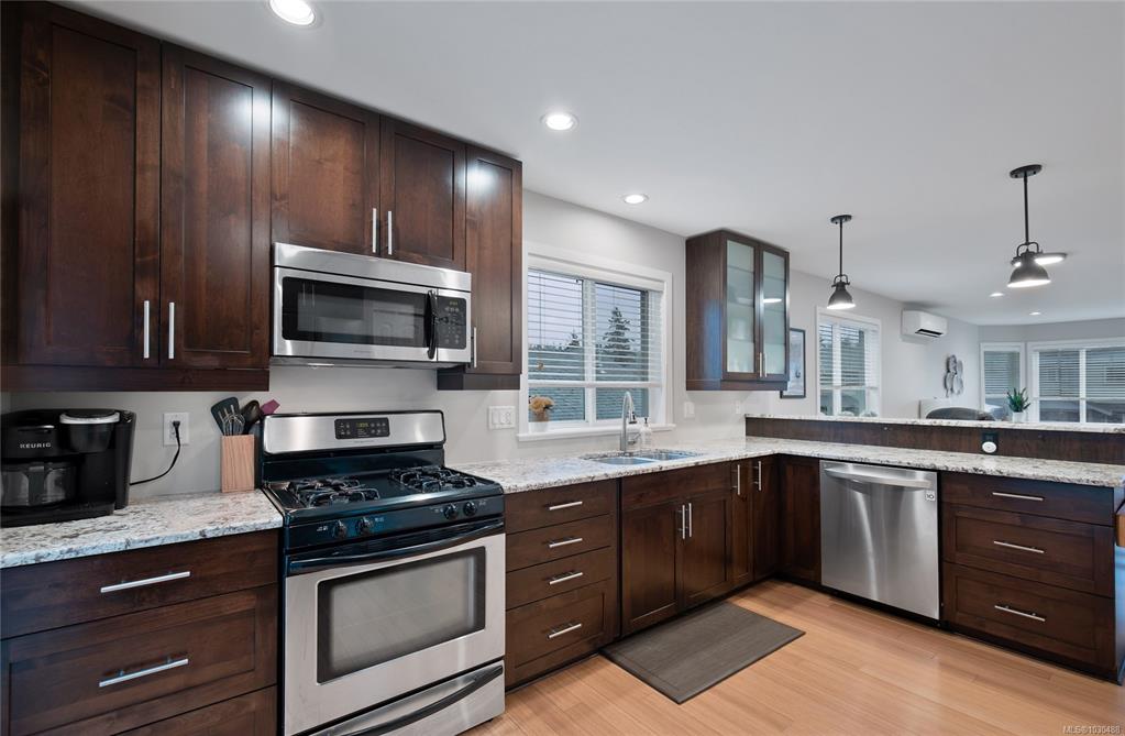 Welcome to this thoughtfully laid out and inviting two-story home in a very quiet and sought after South Nanaimo neighbourhood. This 5 bed plus den, 3 bath, nearly 2300 sq ft home also contains a bright 2 bed, 1 bath legal suite with private side entrance. Upon entering, there is a spacious tiled hallway with access to garage, den, and laundry room. Upstairs, you’ll find the bright and spacious open-concept kitchen, dining and living room. The entire main level has bamboo wood flooring and tiled bathrooms. ...